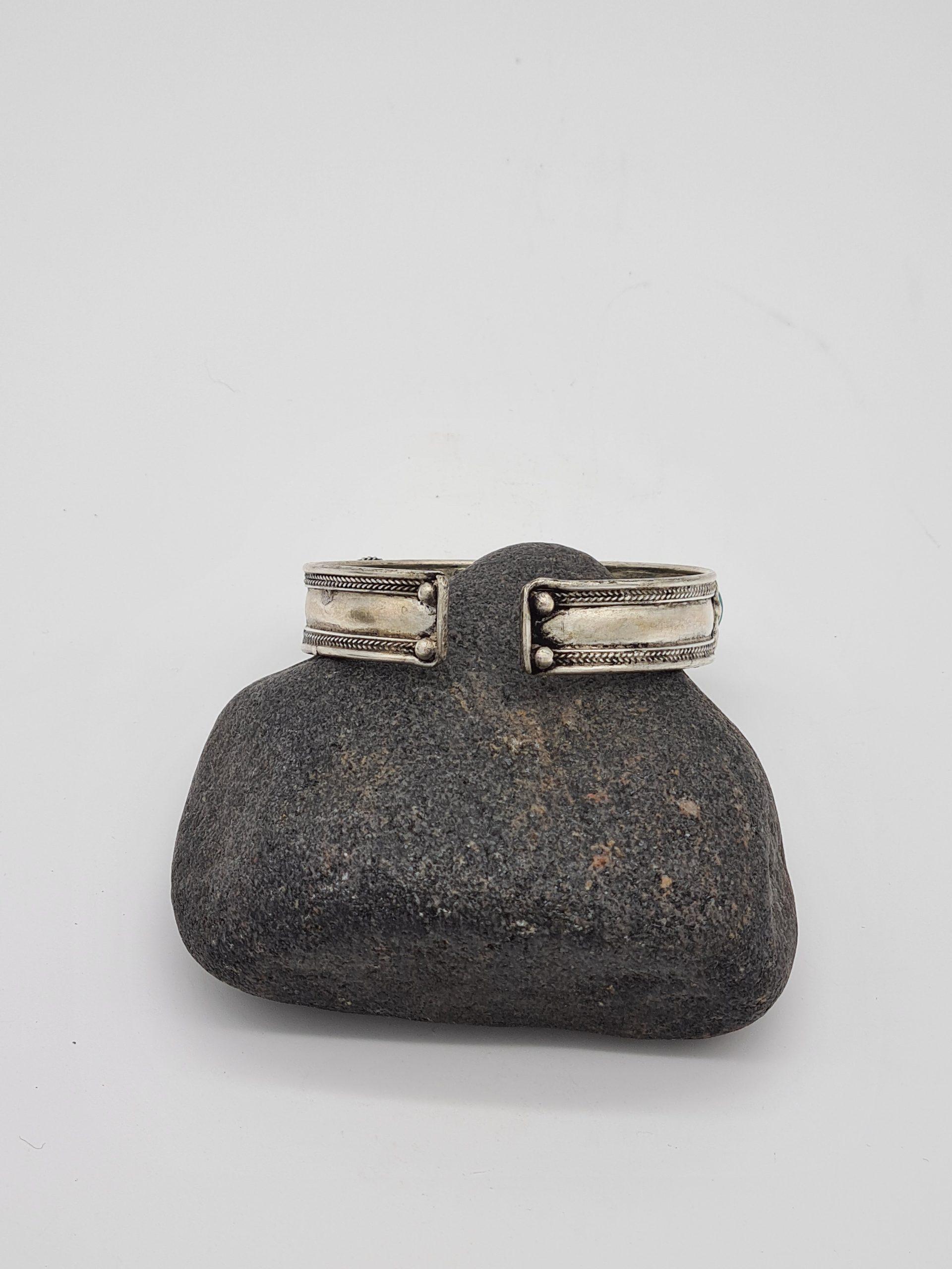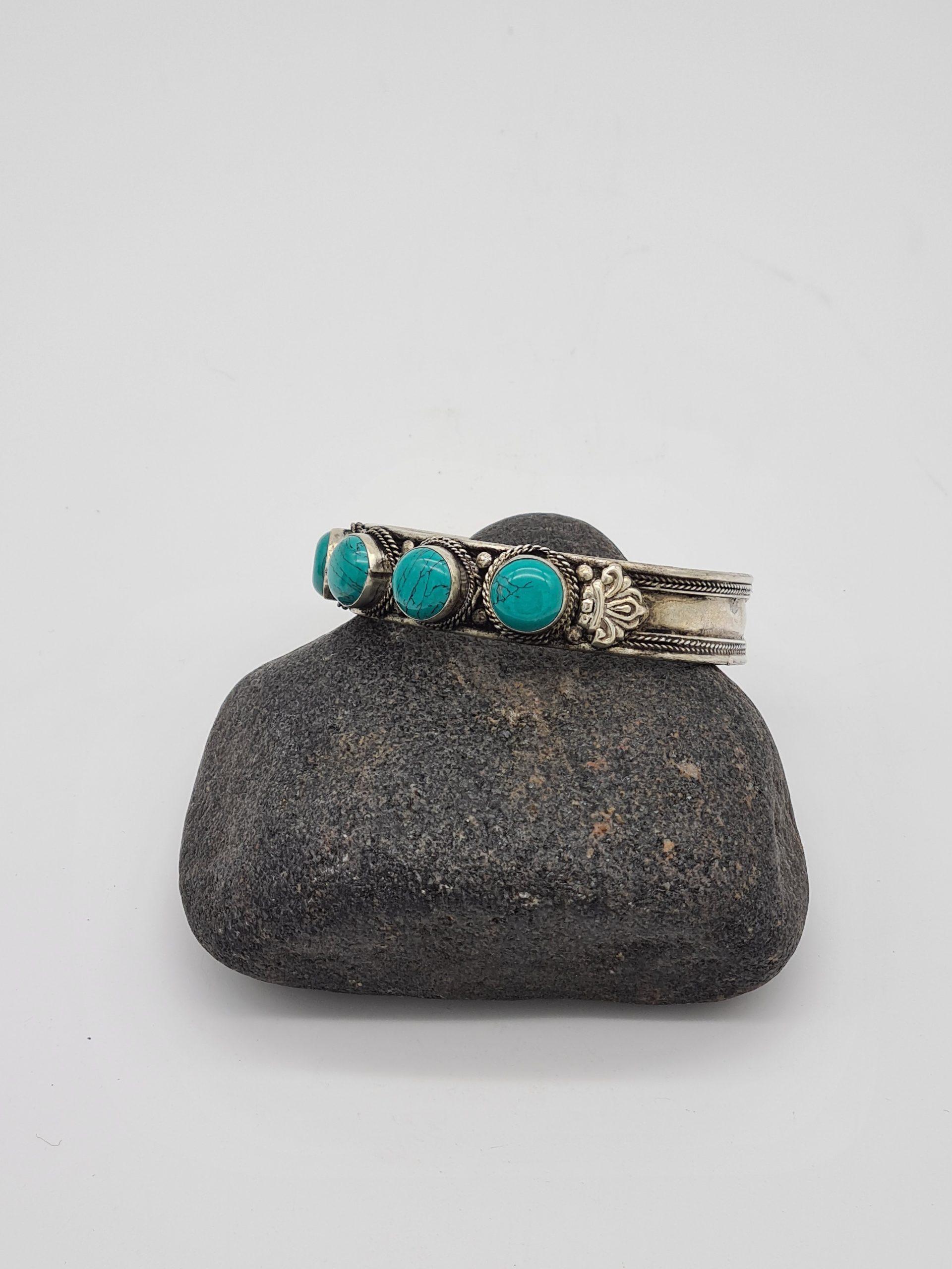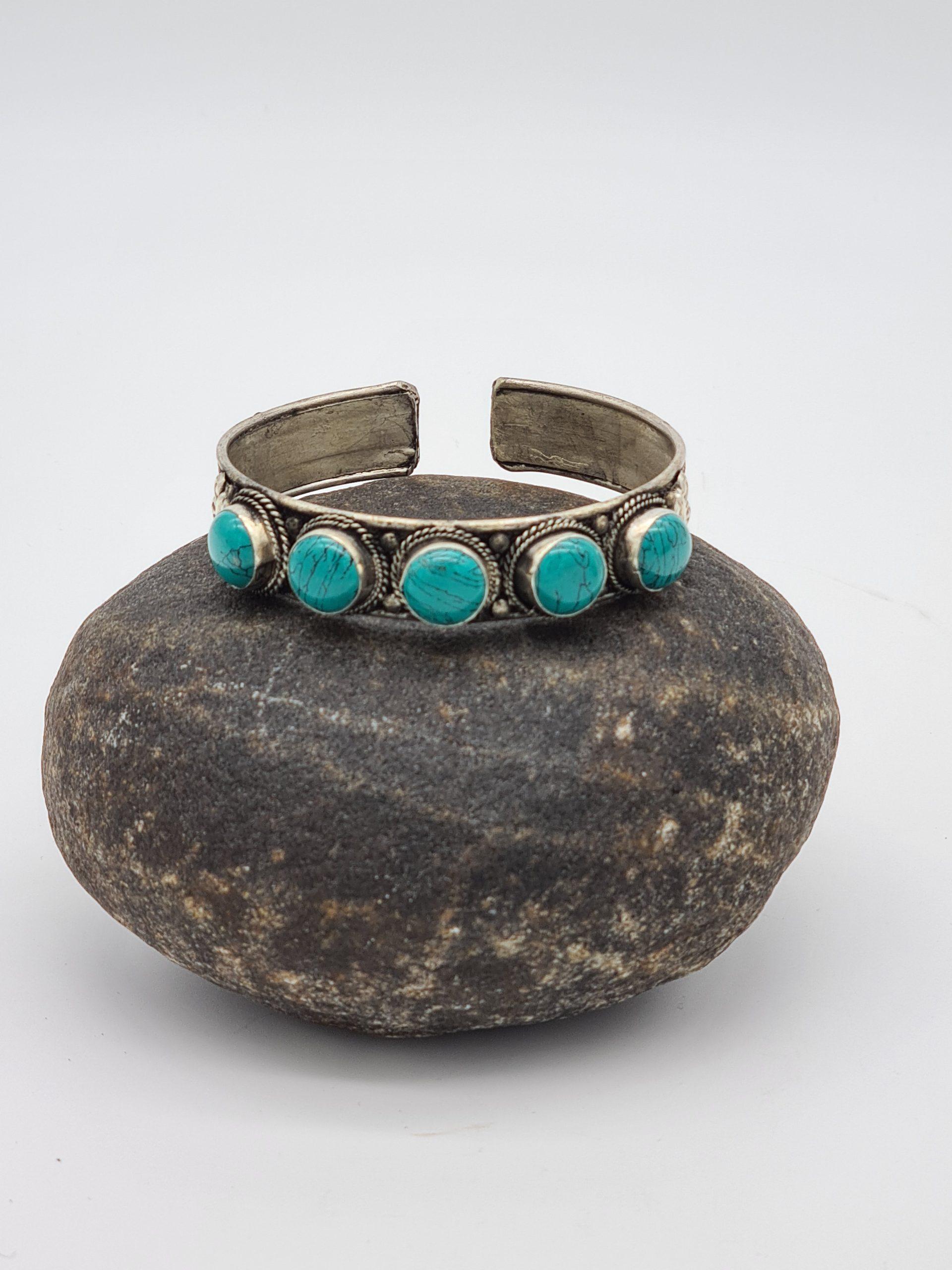 5 Stone Turquoise Bracelet Bangle, Nepalese Bracelet, Tribal Ethnic Open Cuff Bracelet, Boho Rustic Style, Gift for Her