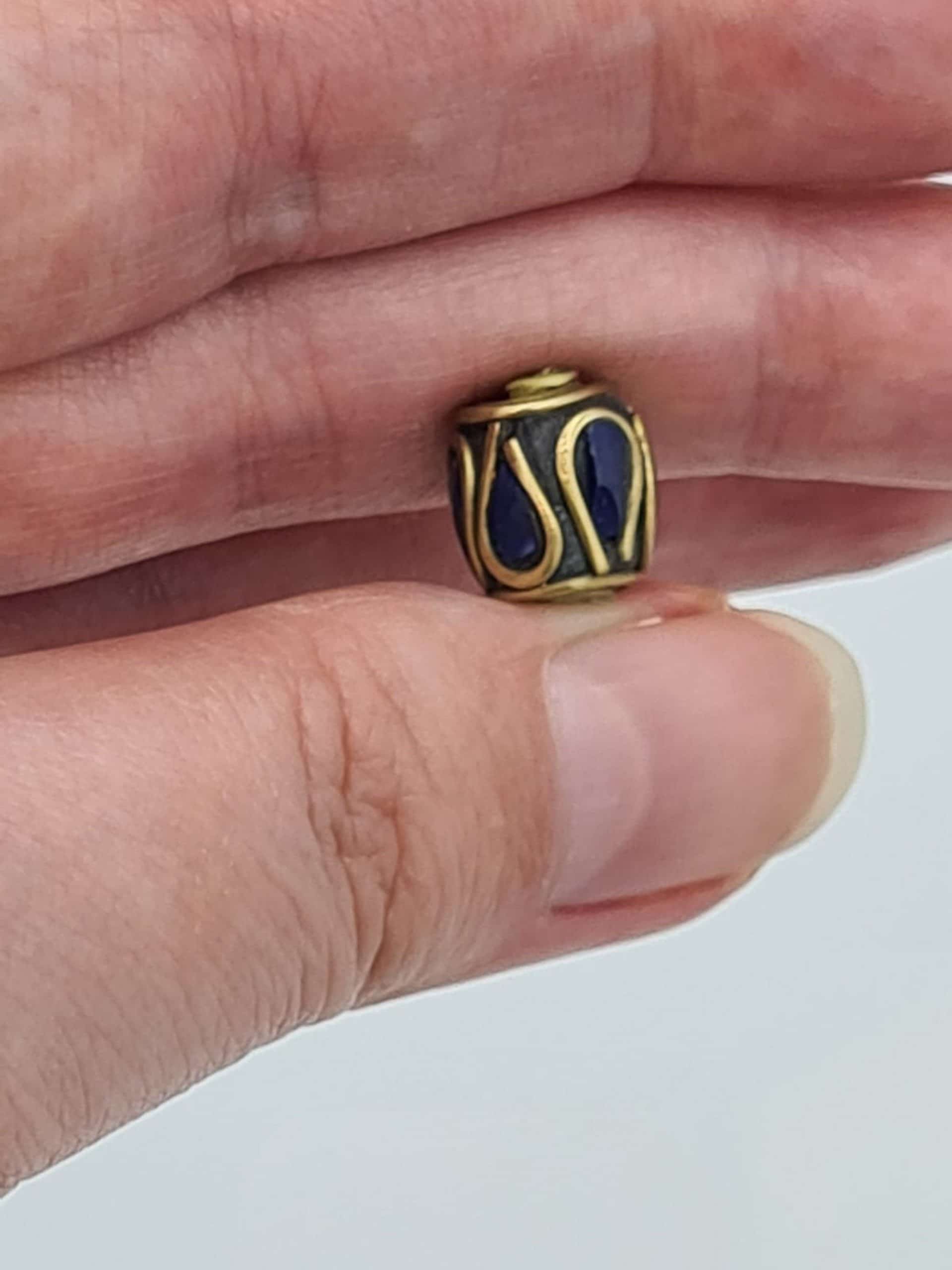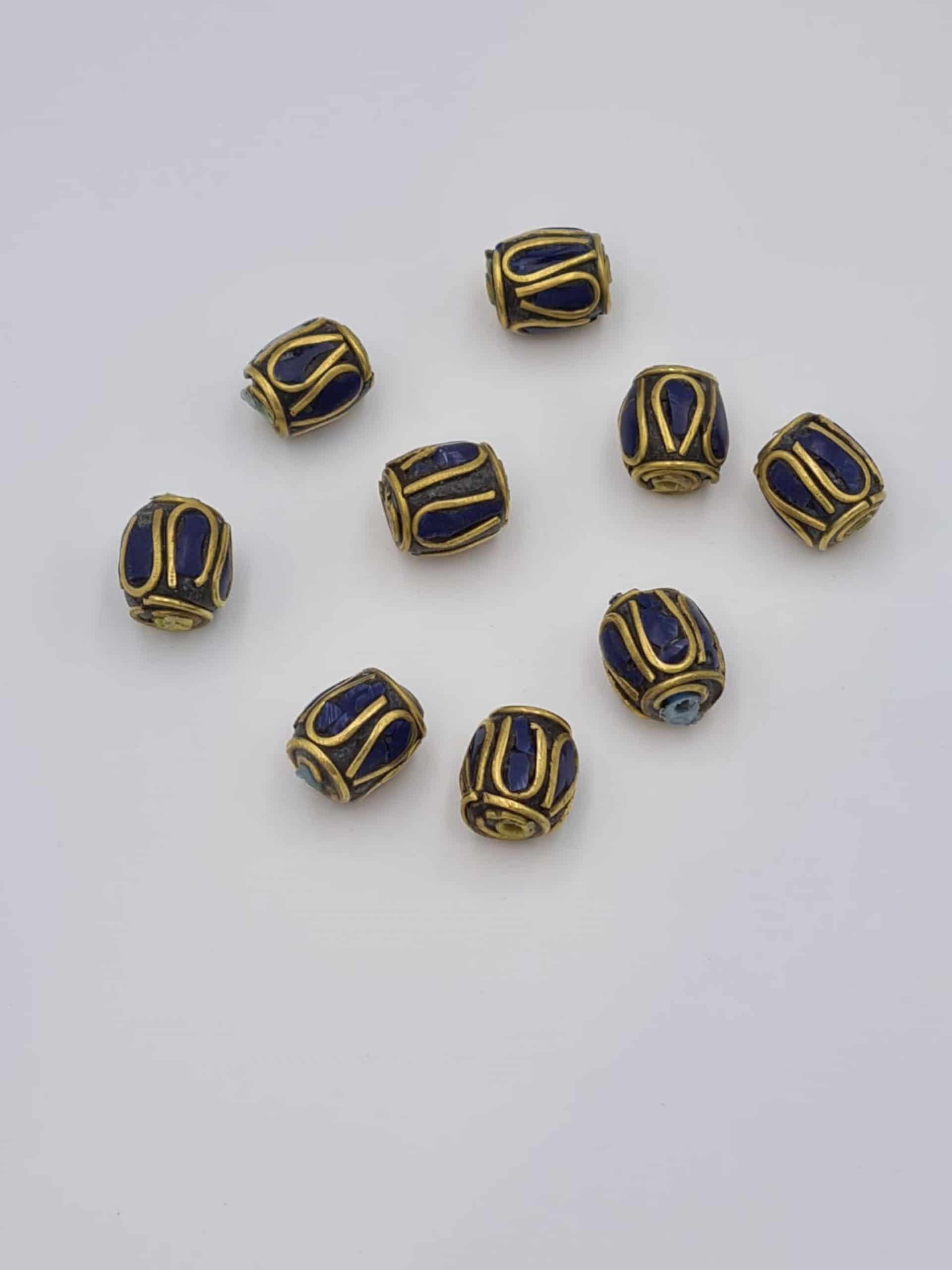 These are beautiful traditional Nepalese beads. They are made of lapiz lazuli inlay and brass. All beads are handmade.
