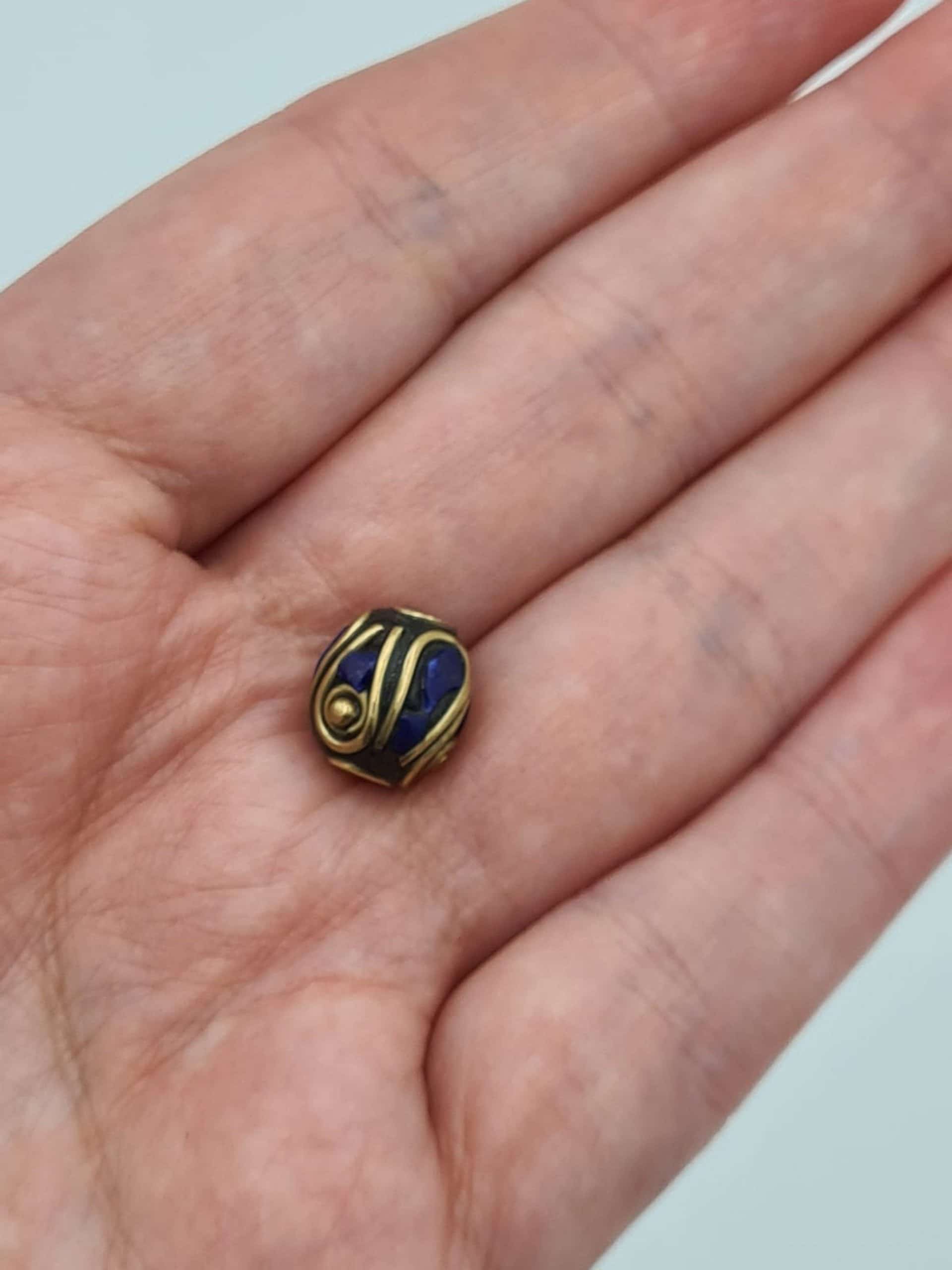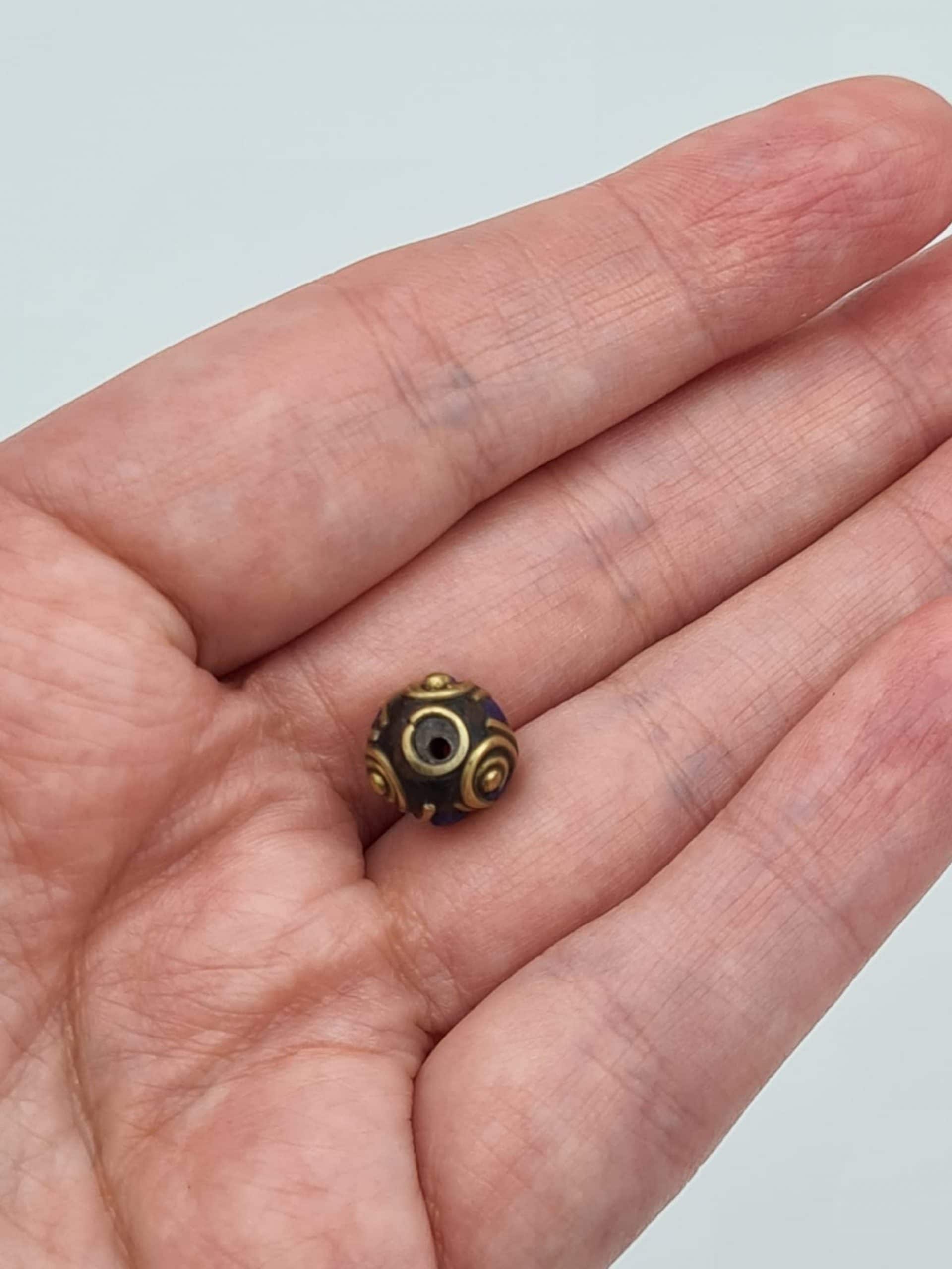 These are beautiful traditional Nepalese beads. They are made of lapiz lazuli inlay and brass. All beads are handmade.