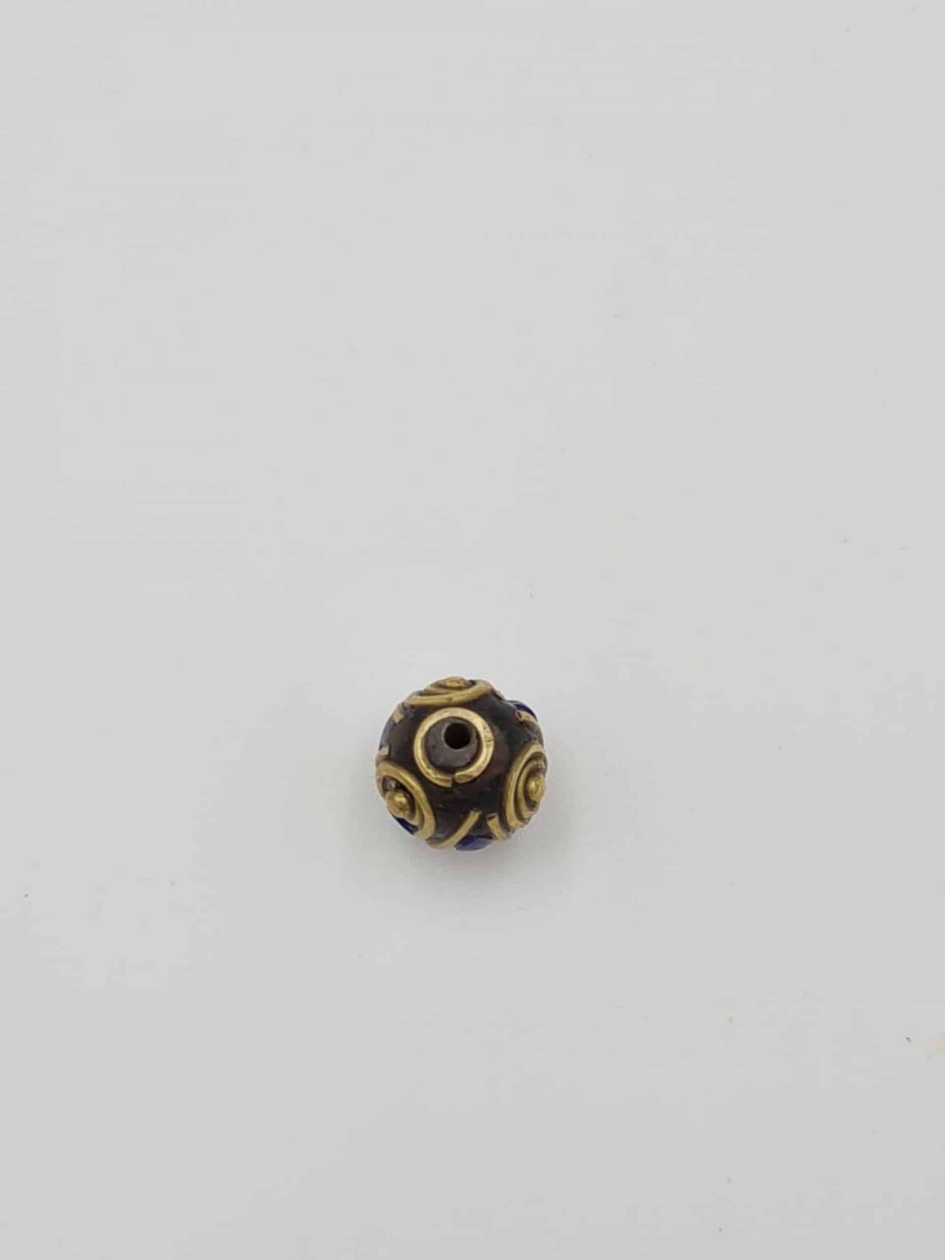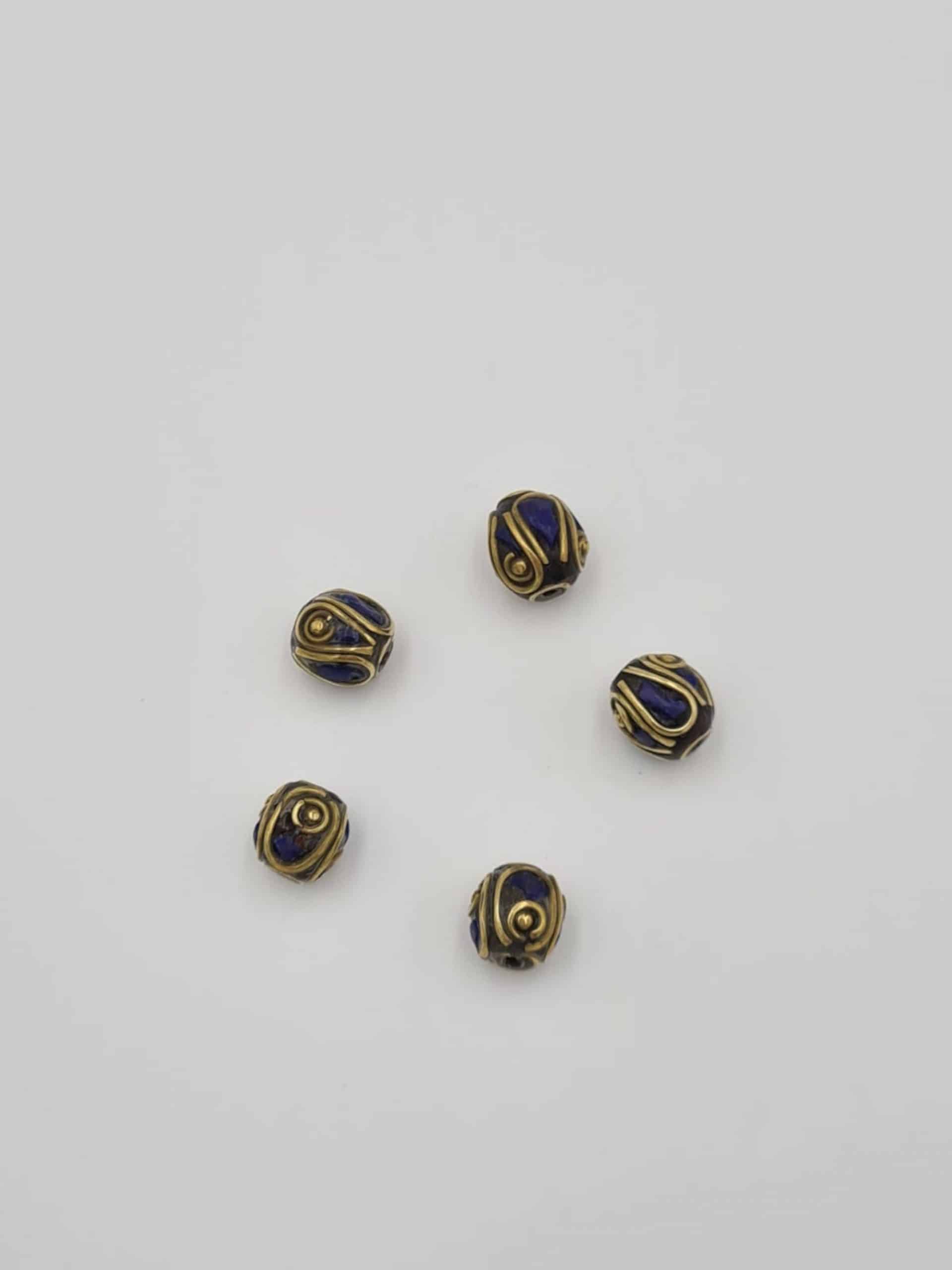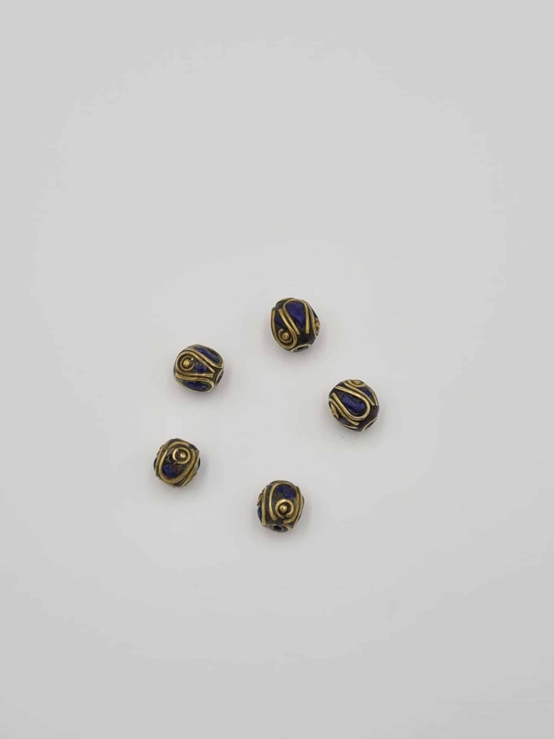 5 Lapiz Lazuli Inlaid Round Beads, Ethnic Brass Beads, Mixed Ethnic Tribal Beads, Brass Beads, Jewellery Making Beads, Nepal
