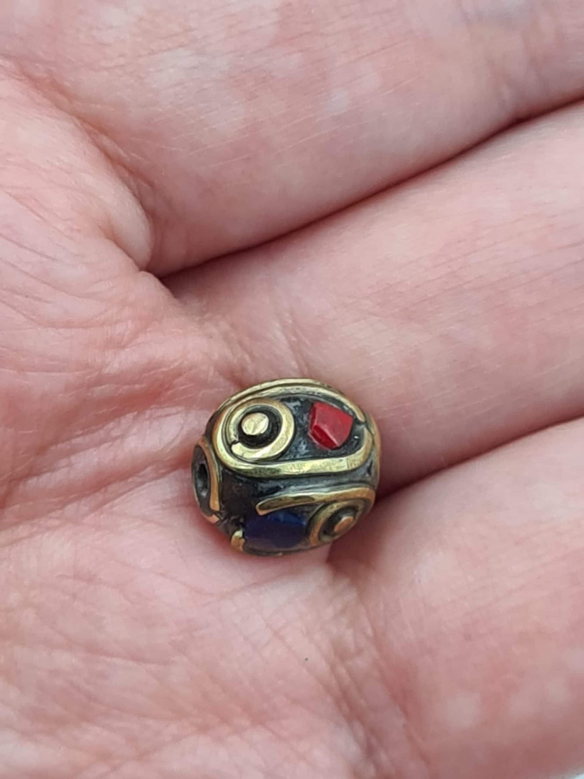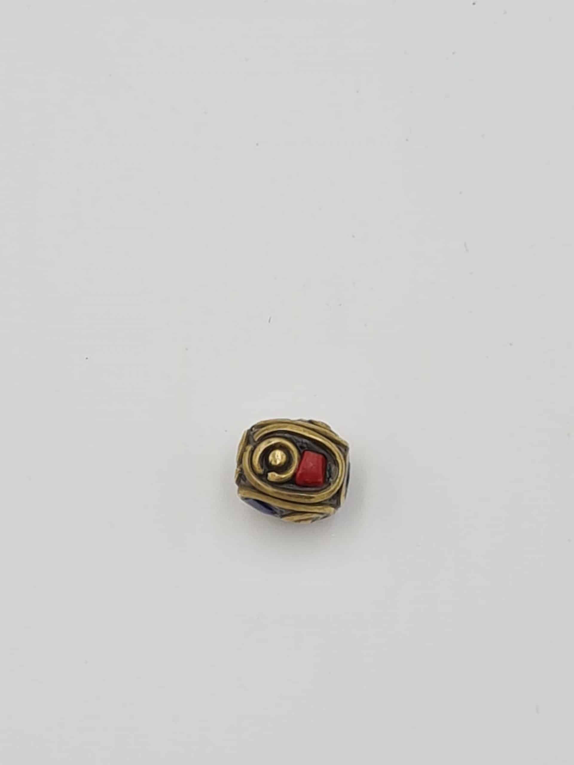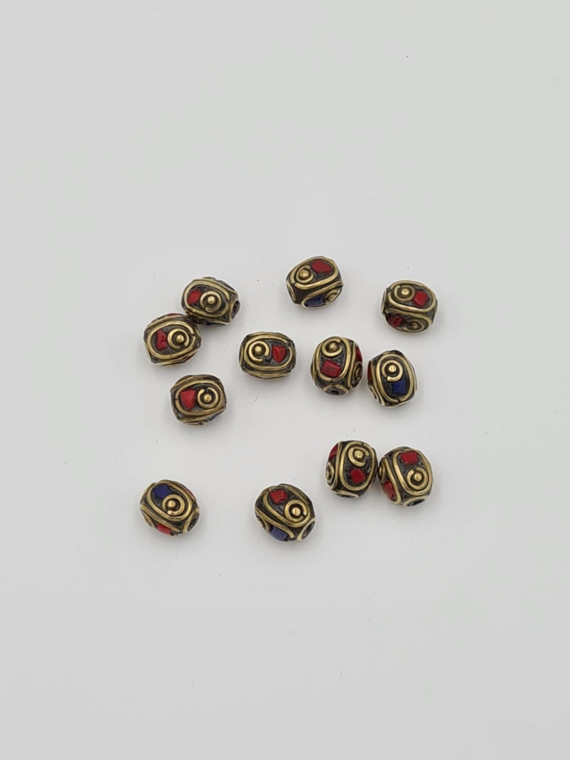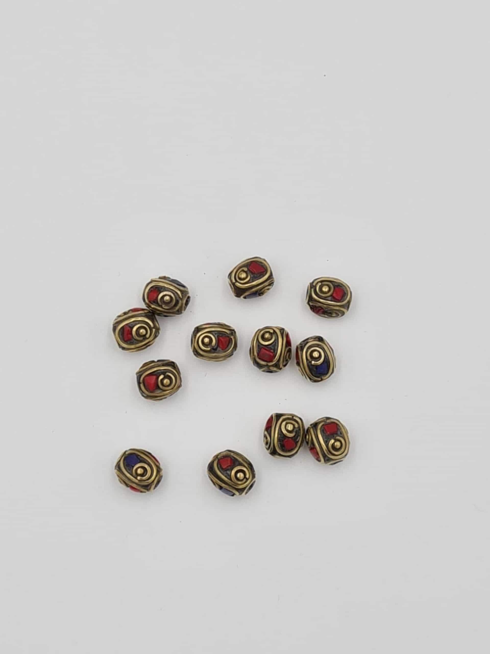 These are beautiful traditional Nepalese beads. They are made of coral and lapiz lazuli inlay and brass. All beads are handmade.