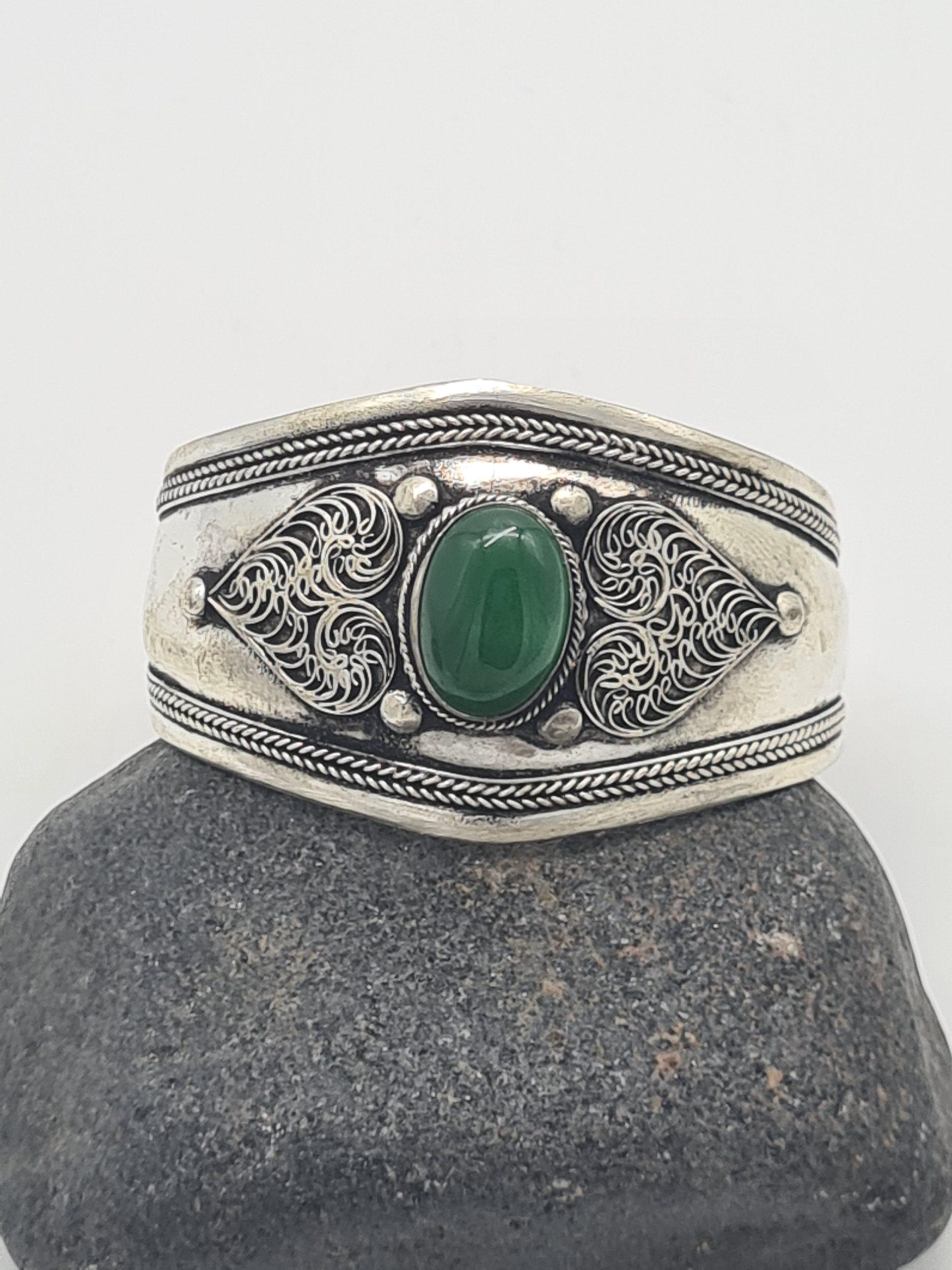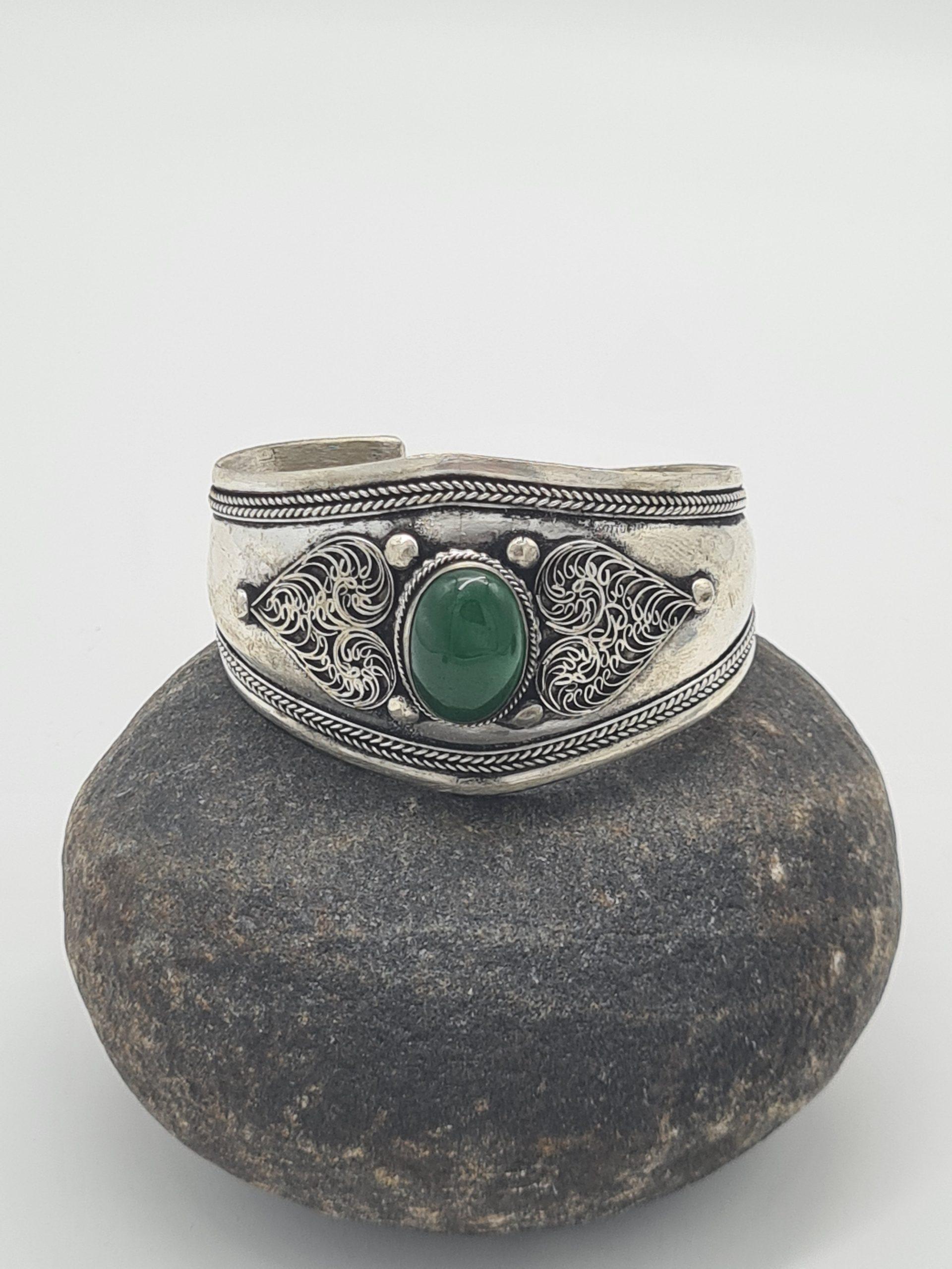 Boho Ethnic Green Onyx Bracelet Bangle, Tribal Ethnic Open Cuff Bracelet, Bangle, Boho Style, Gypsy Bracelet, Gift For Her