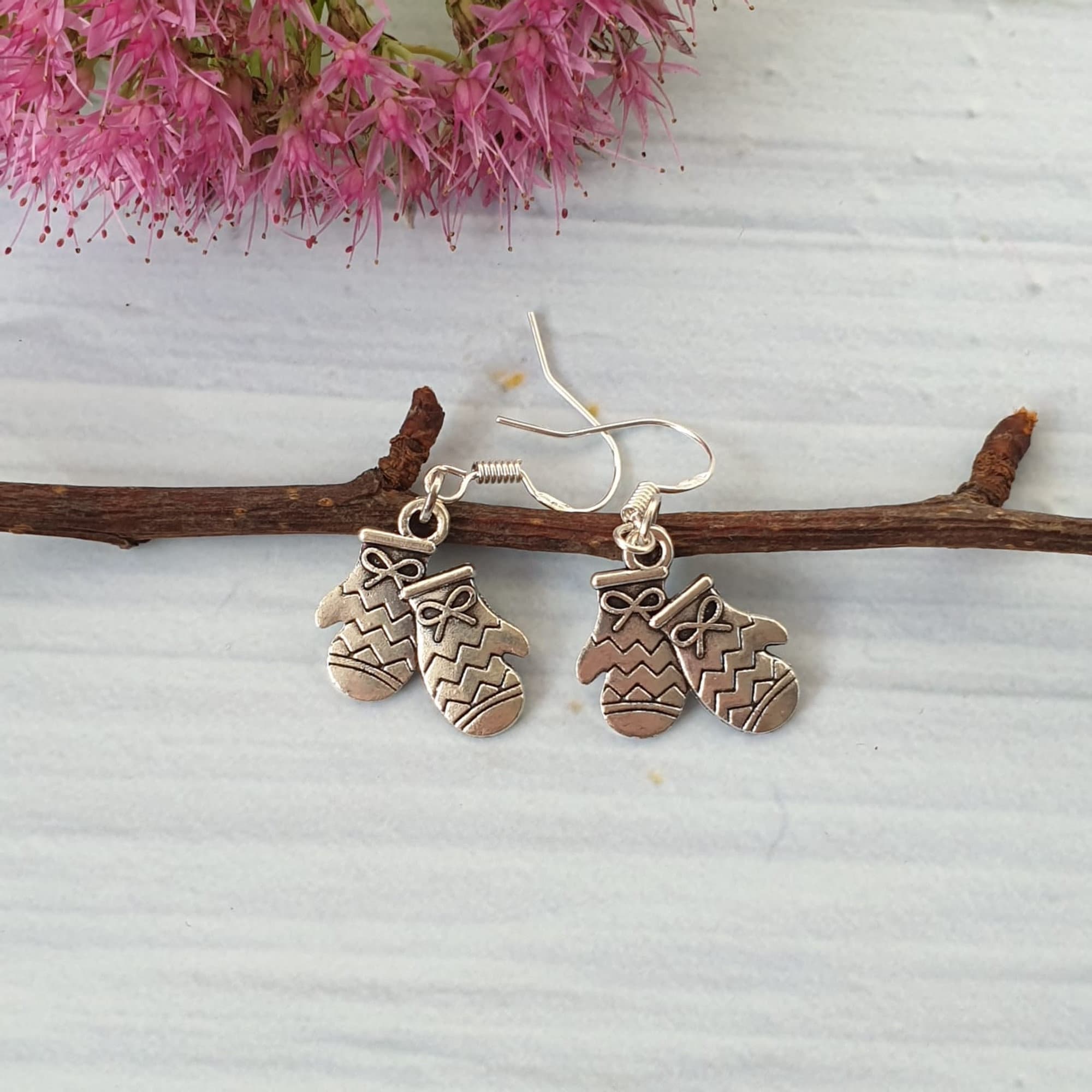 Christmas Earrings, Mittens Earrings, Minimalist Earrings, 925 Silver Hooks, Boho Statement Earrings, Gift for Her