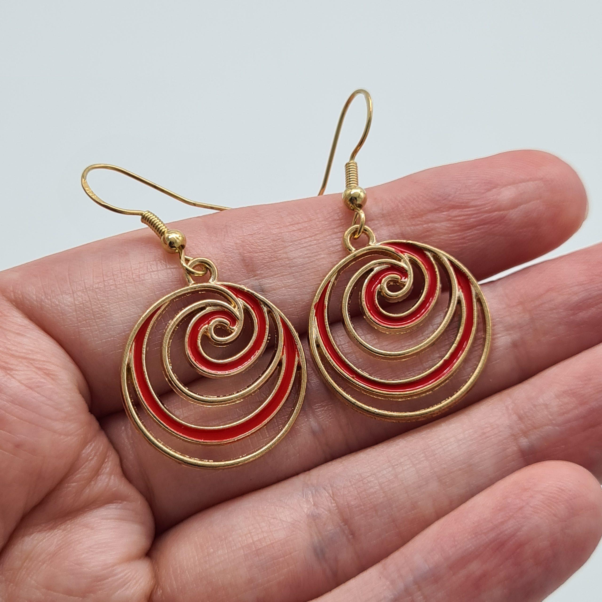 Beautiful red hoop earrings. They are really fun and quirky earrings and will be a perfect gift for someone.