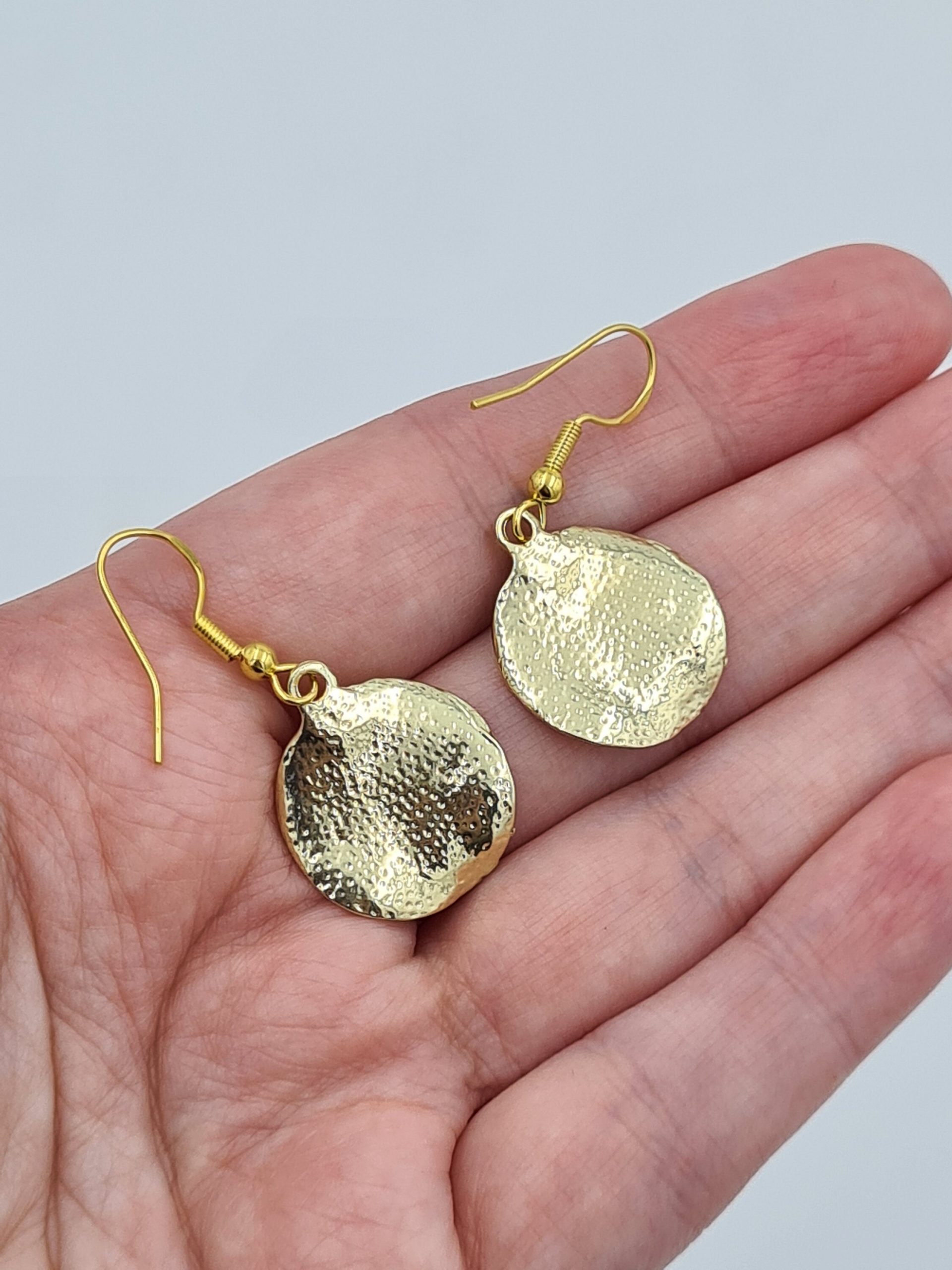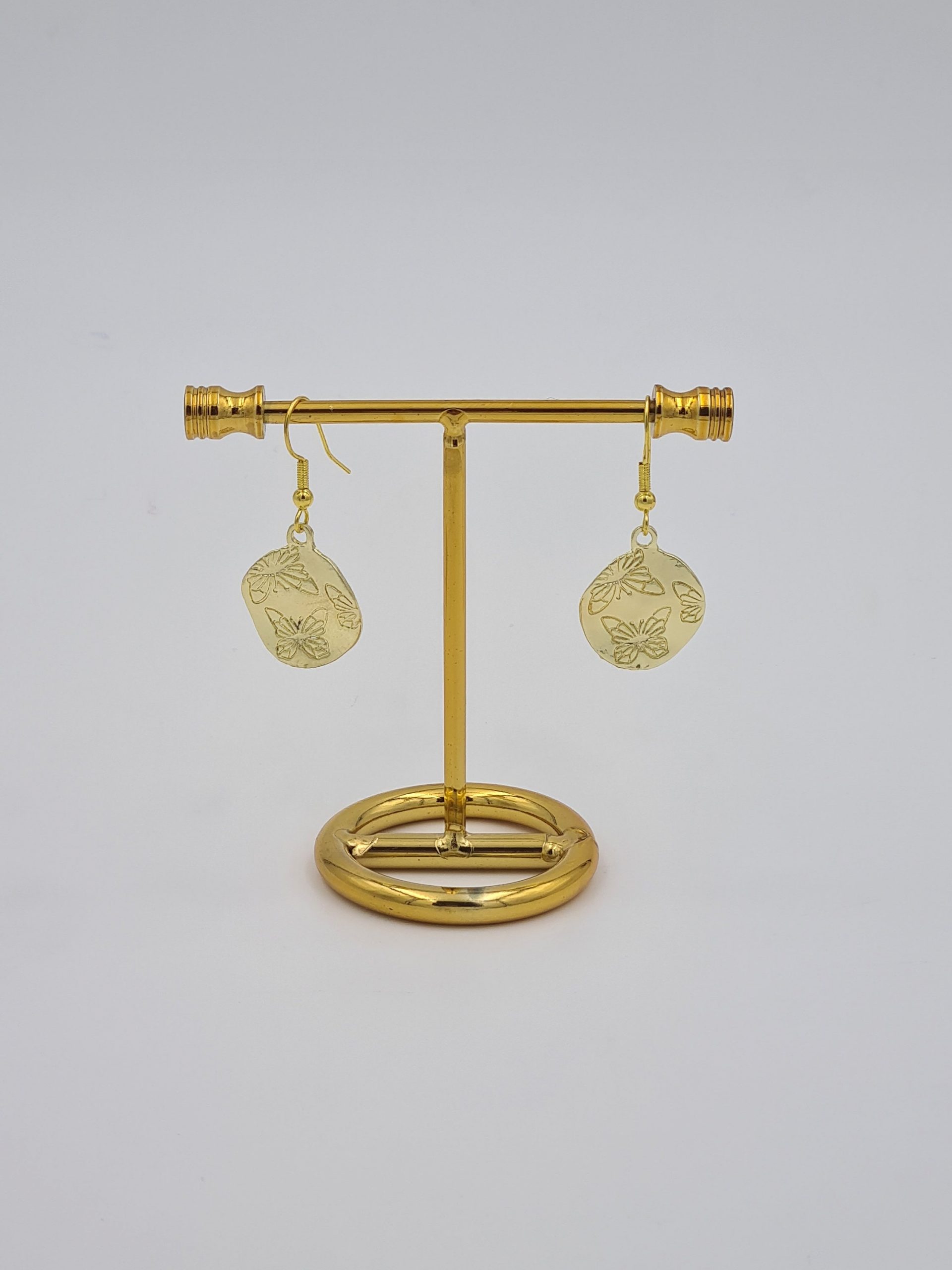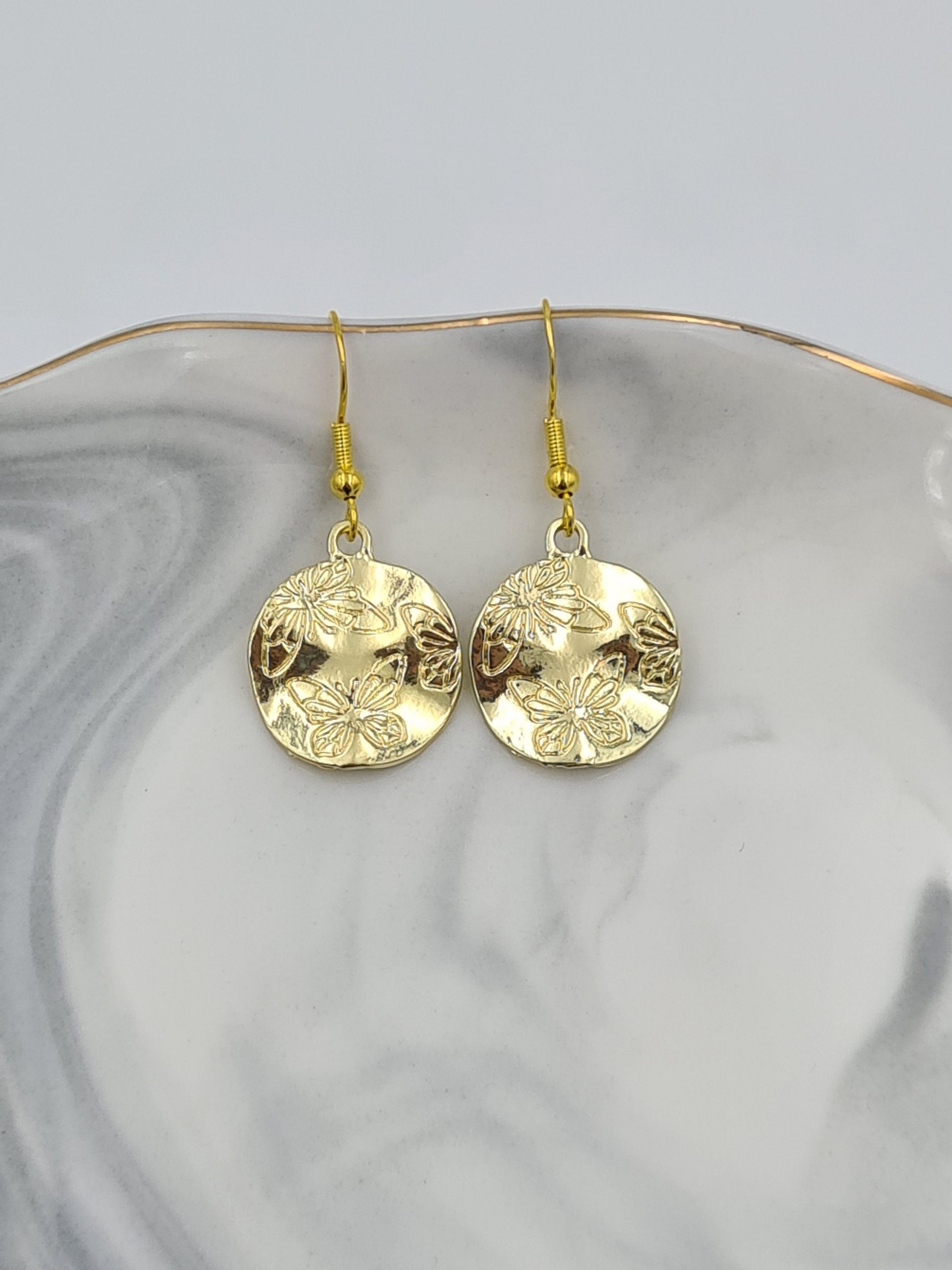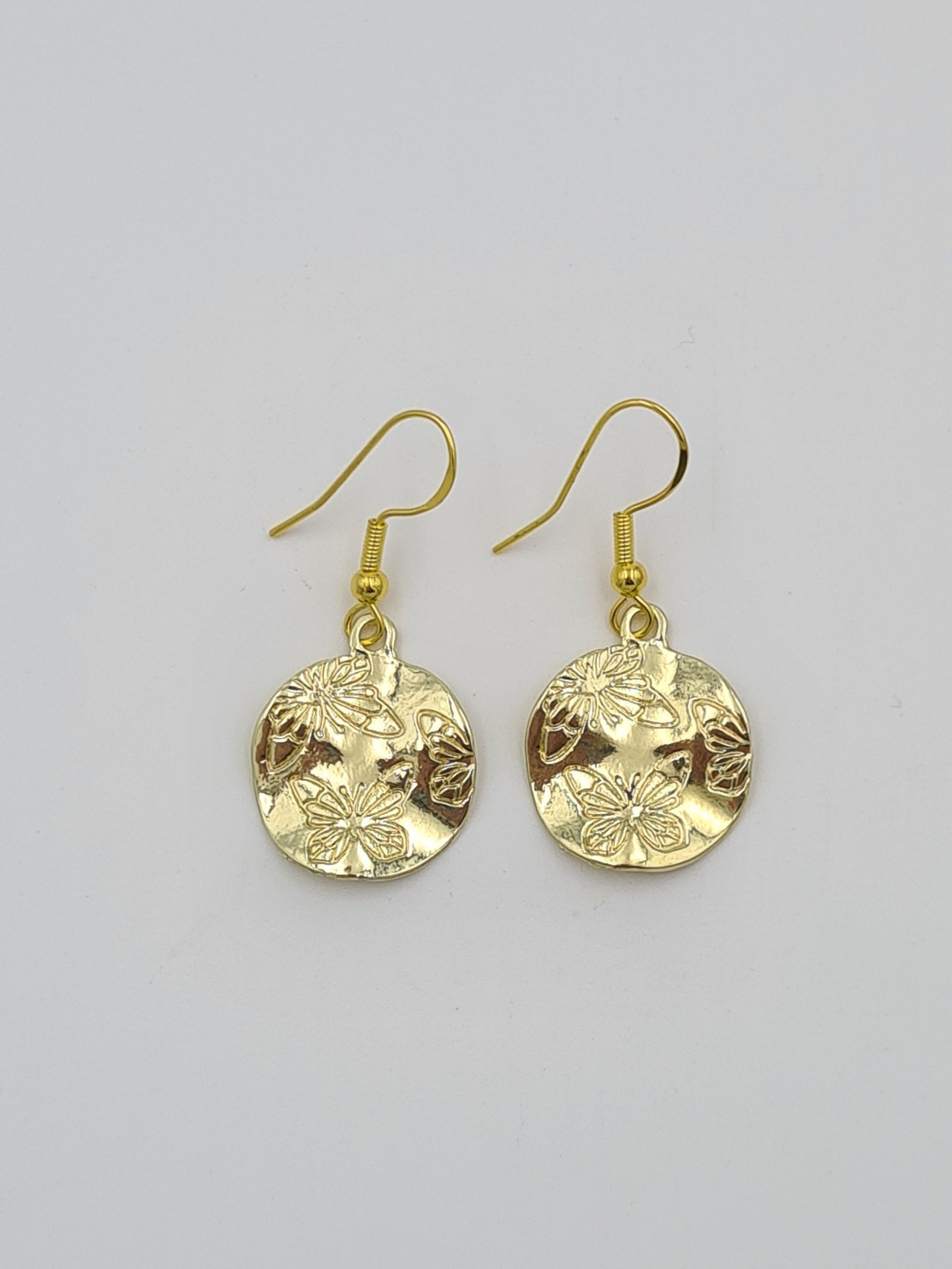 These are elegant gold plated earrings. The charms have butterflies engraved on one side. They look even better in real life and will be perfect for someone who loves boho style jewellery. They are very lightweight. Each pair comes in a pretty pouch and is ready to be gifted.