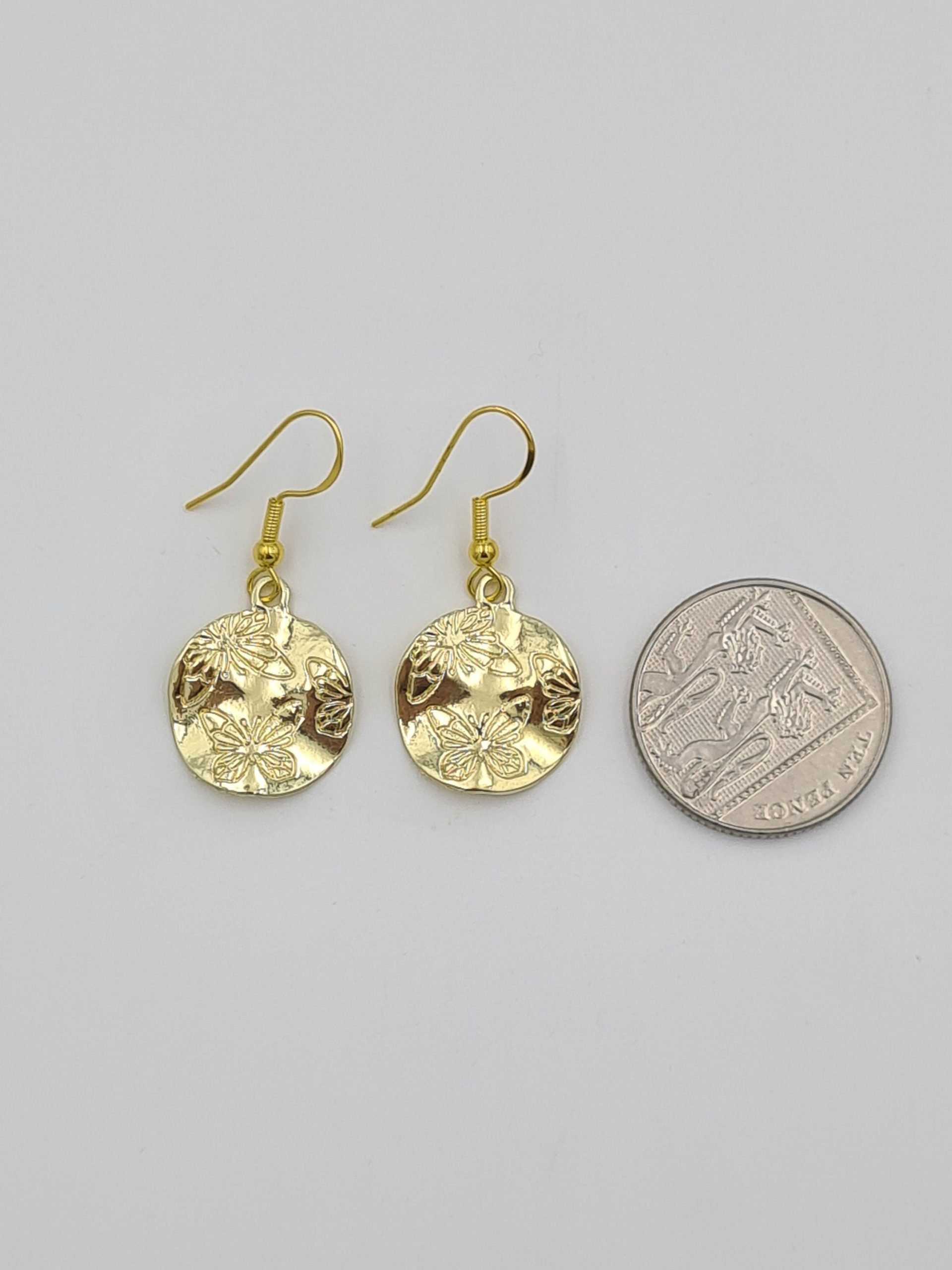 Gold Plated Butterfly Earrings, Gold Coin Earrings, Minimalist Earrings, Bohemian Earrings, Boho Statement Earrings, Christmas Gift for Her