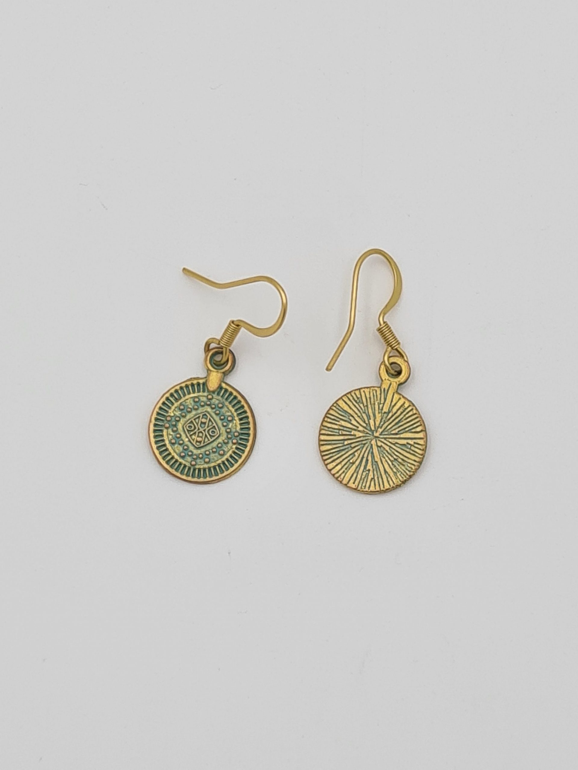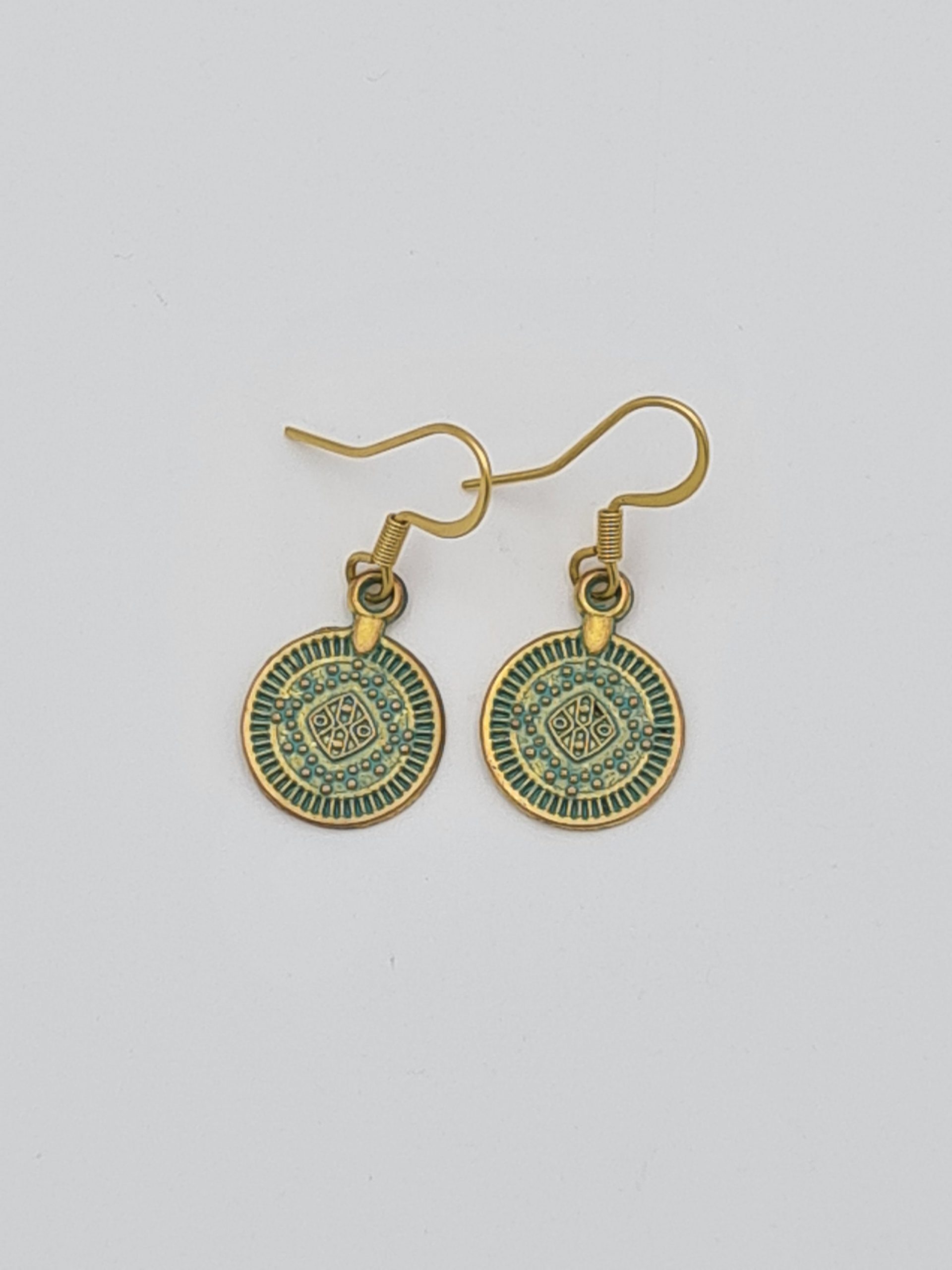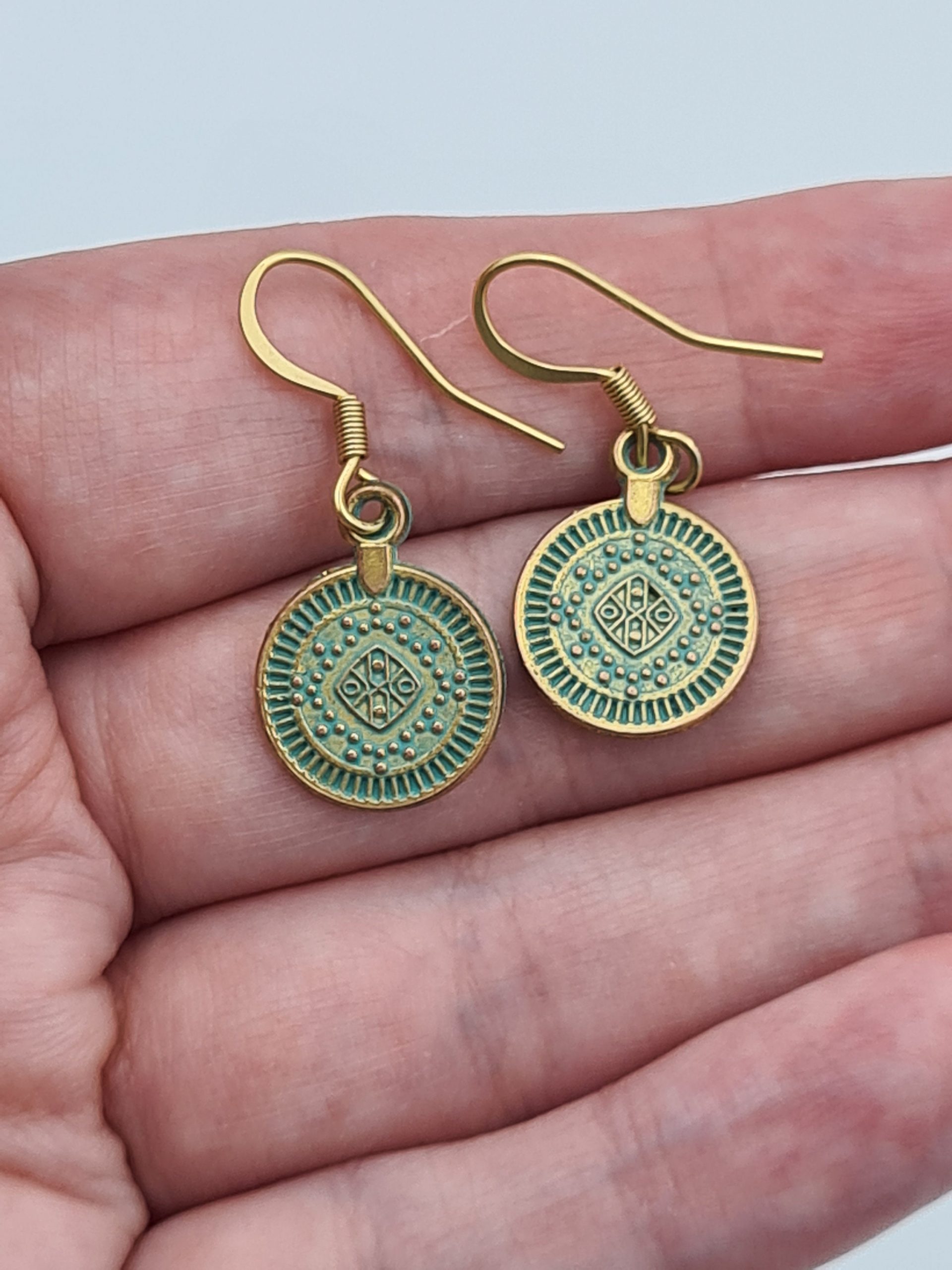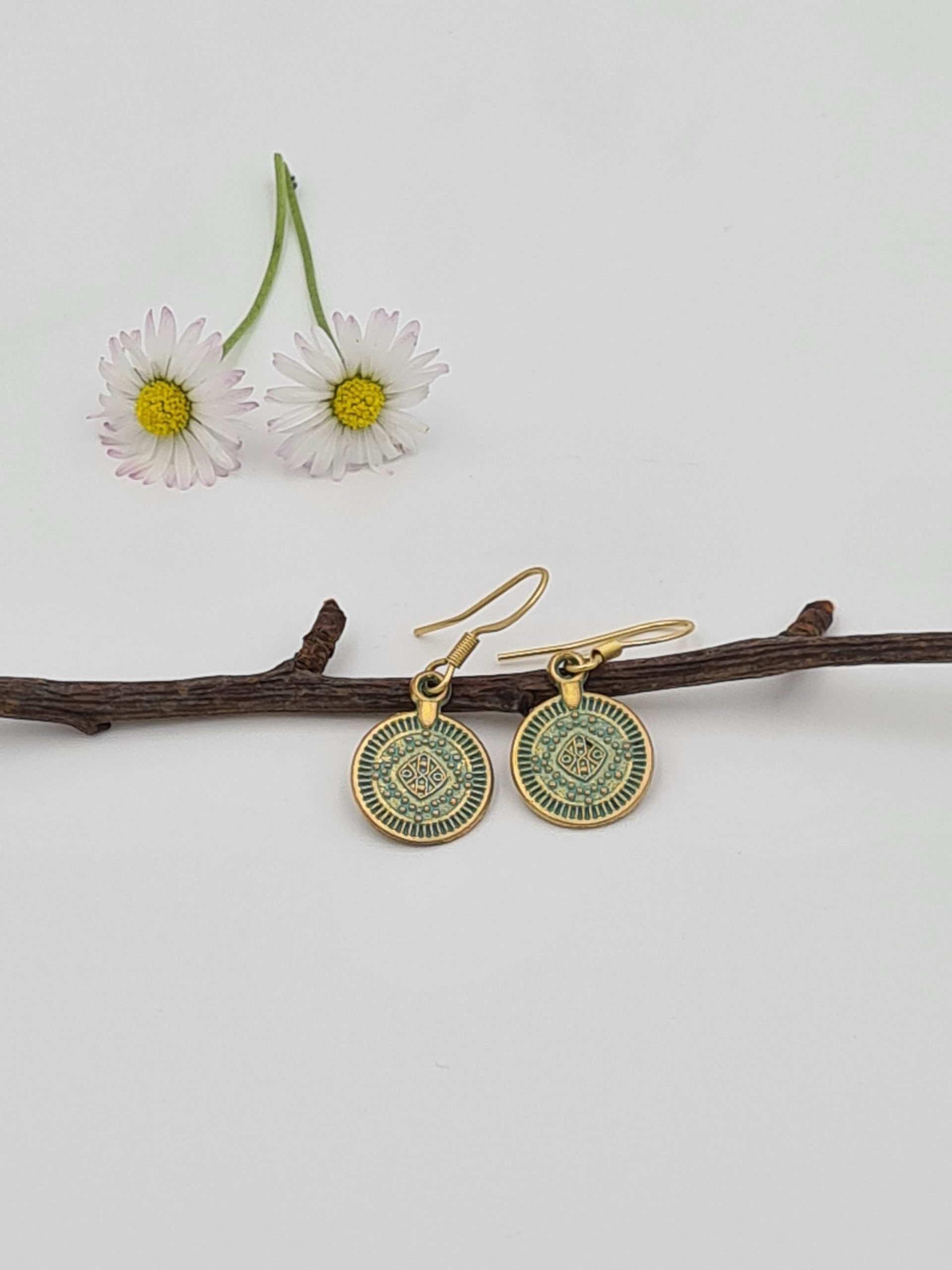 These are pretty retro boho style coin earrings which are covered with green patina. They look even better in real life and will be perfect for someone who loves boho style jewellery.