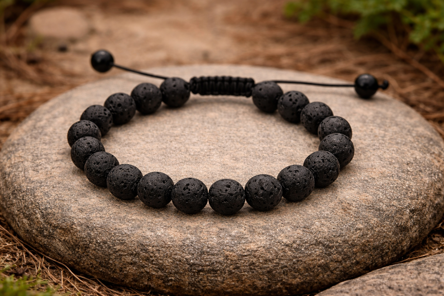 Beautiful lava stone beaded bracelet. The bracelet has sliding knot closure, therefore you can adjust the size as required.