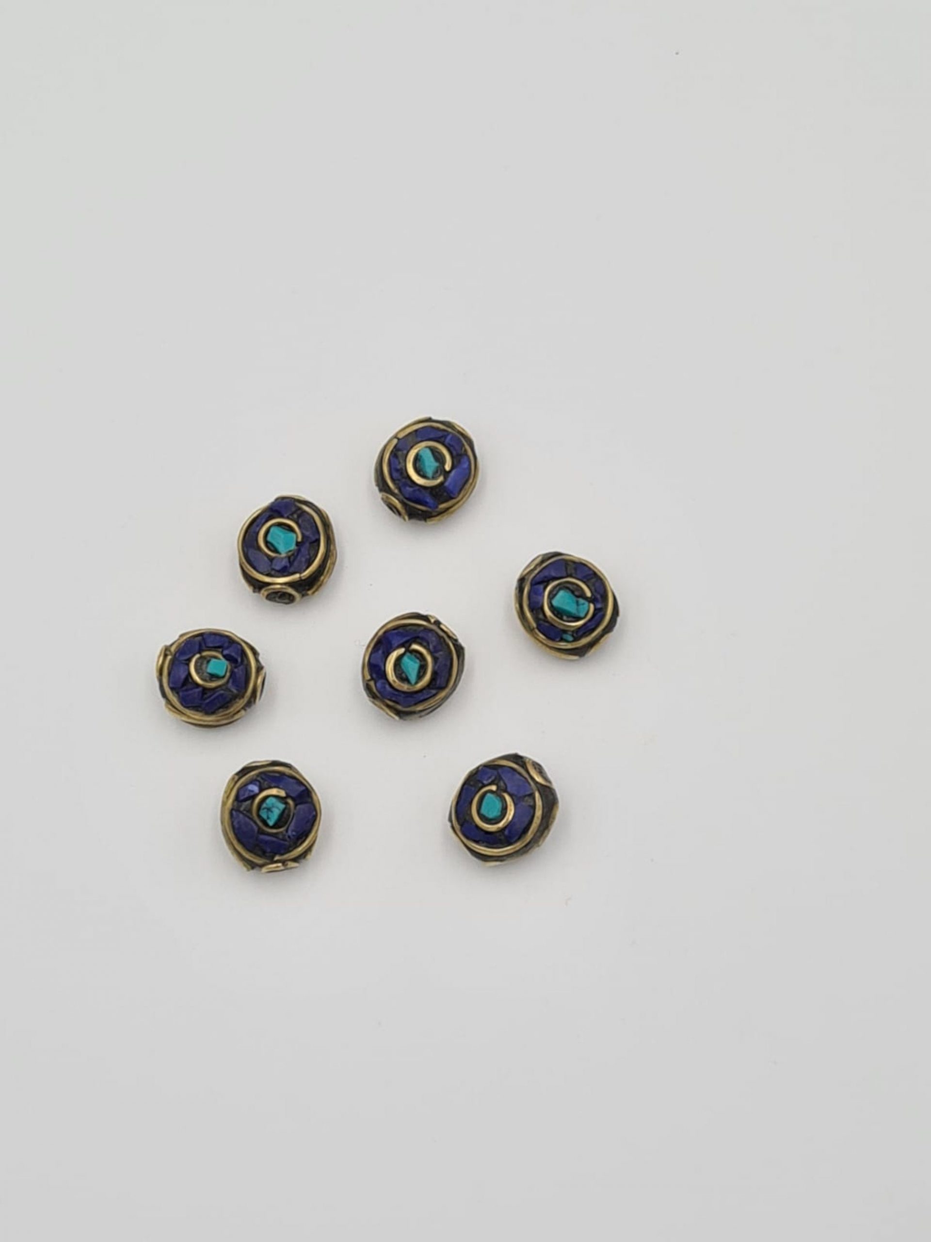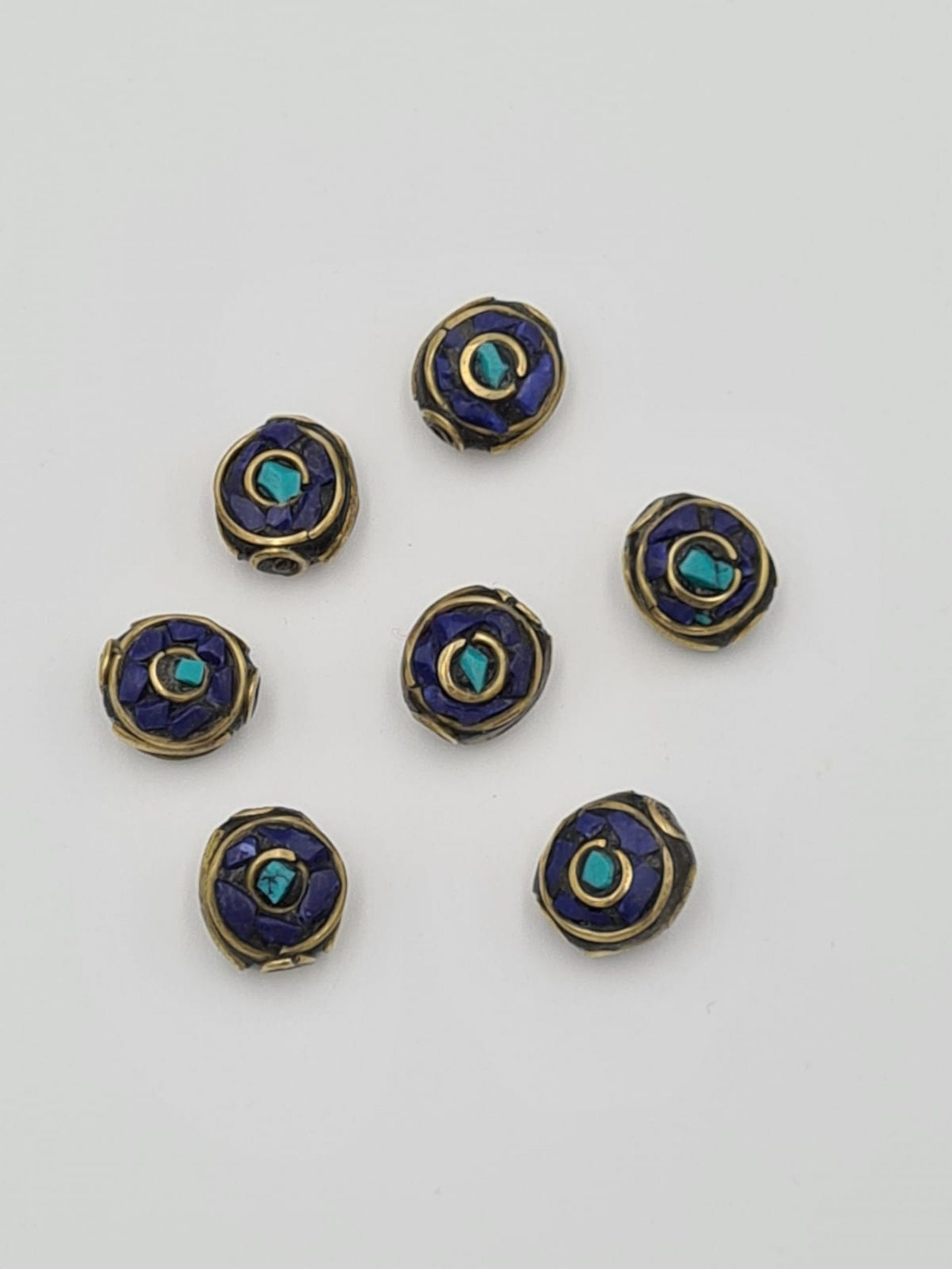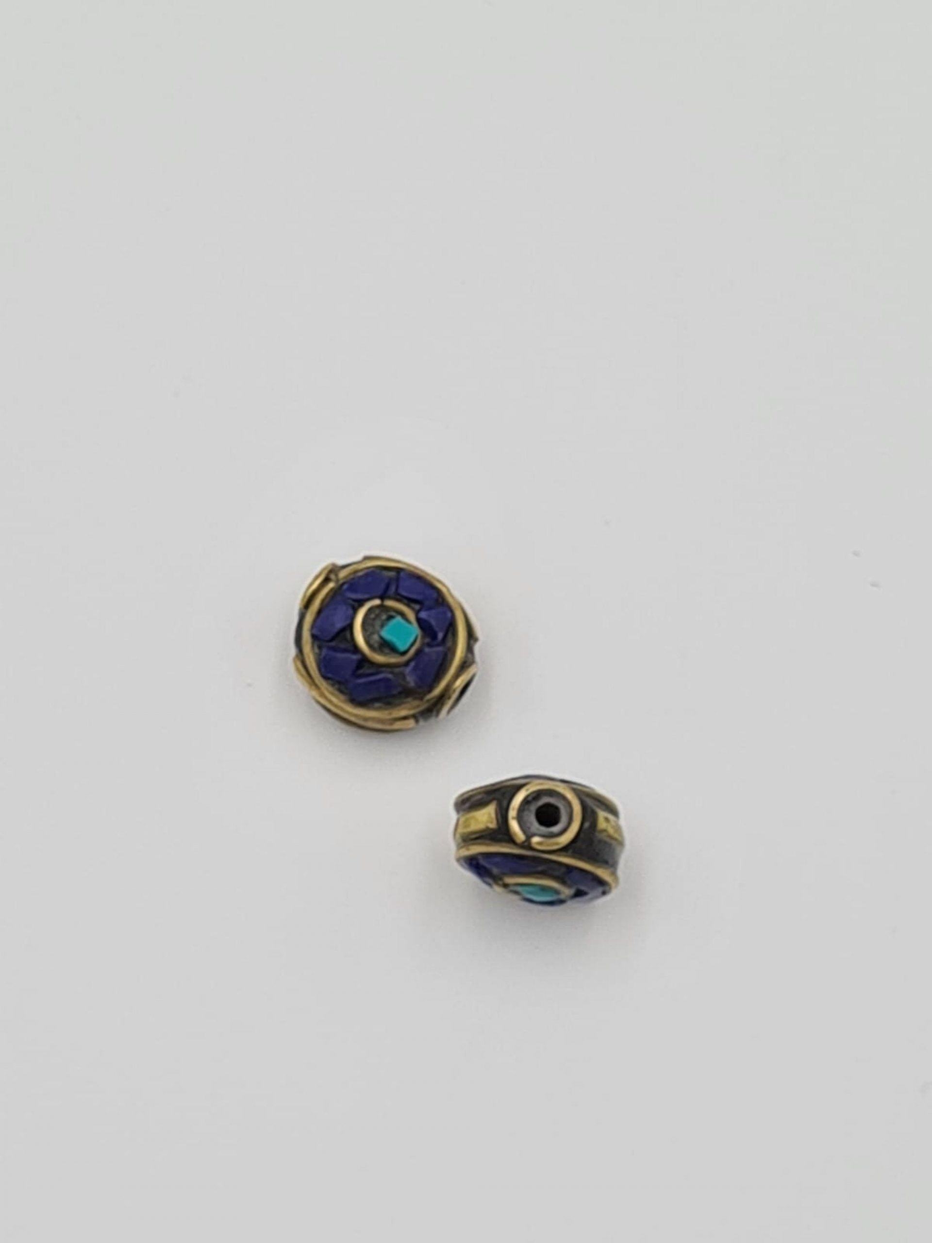 These are beautiful traditional Nepalese lapiz lazuli beads. They are made of lapiz lazul inlay and brass. All beads are handmade.