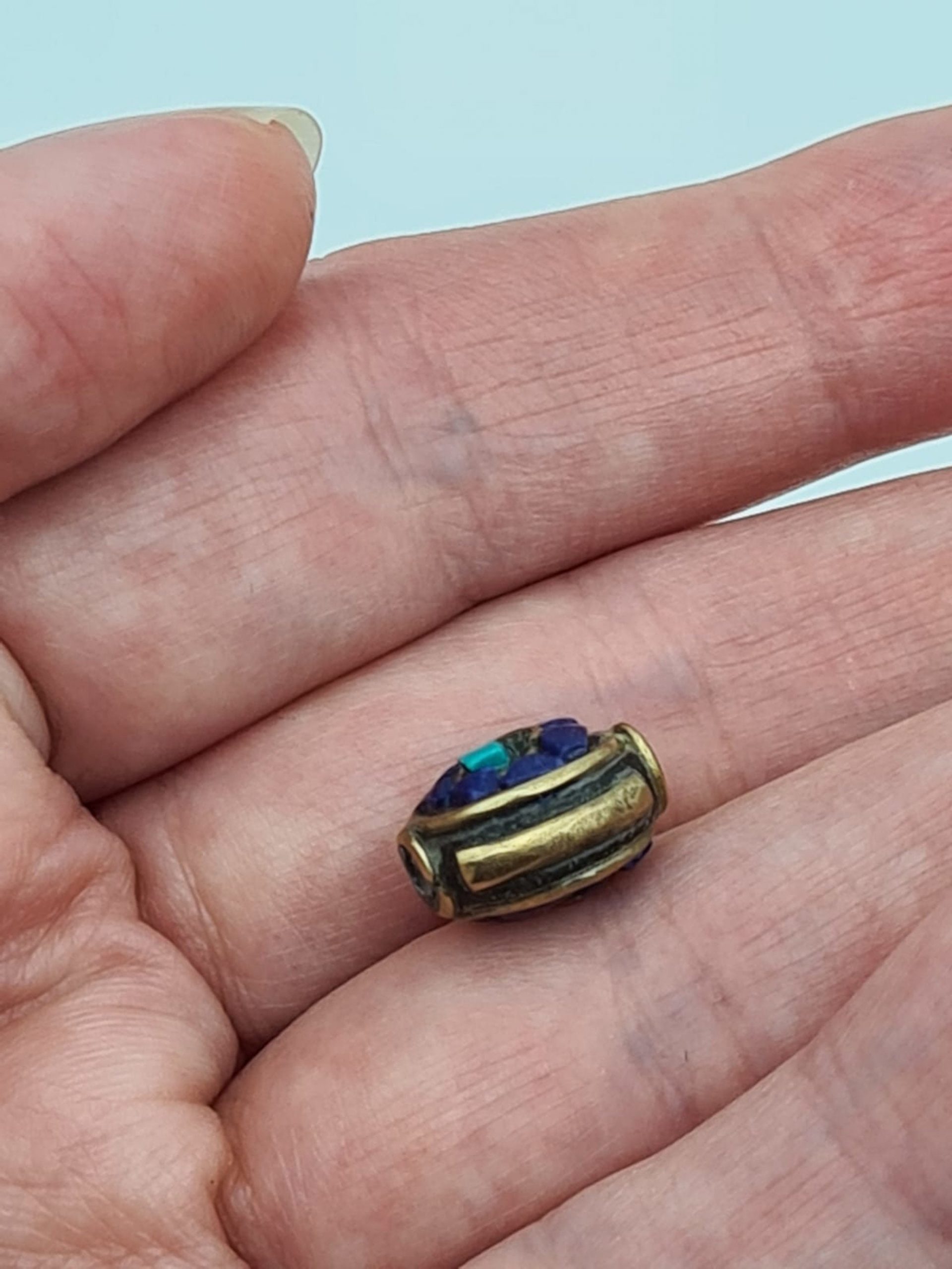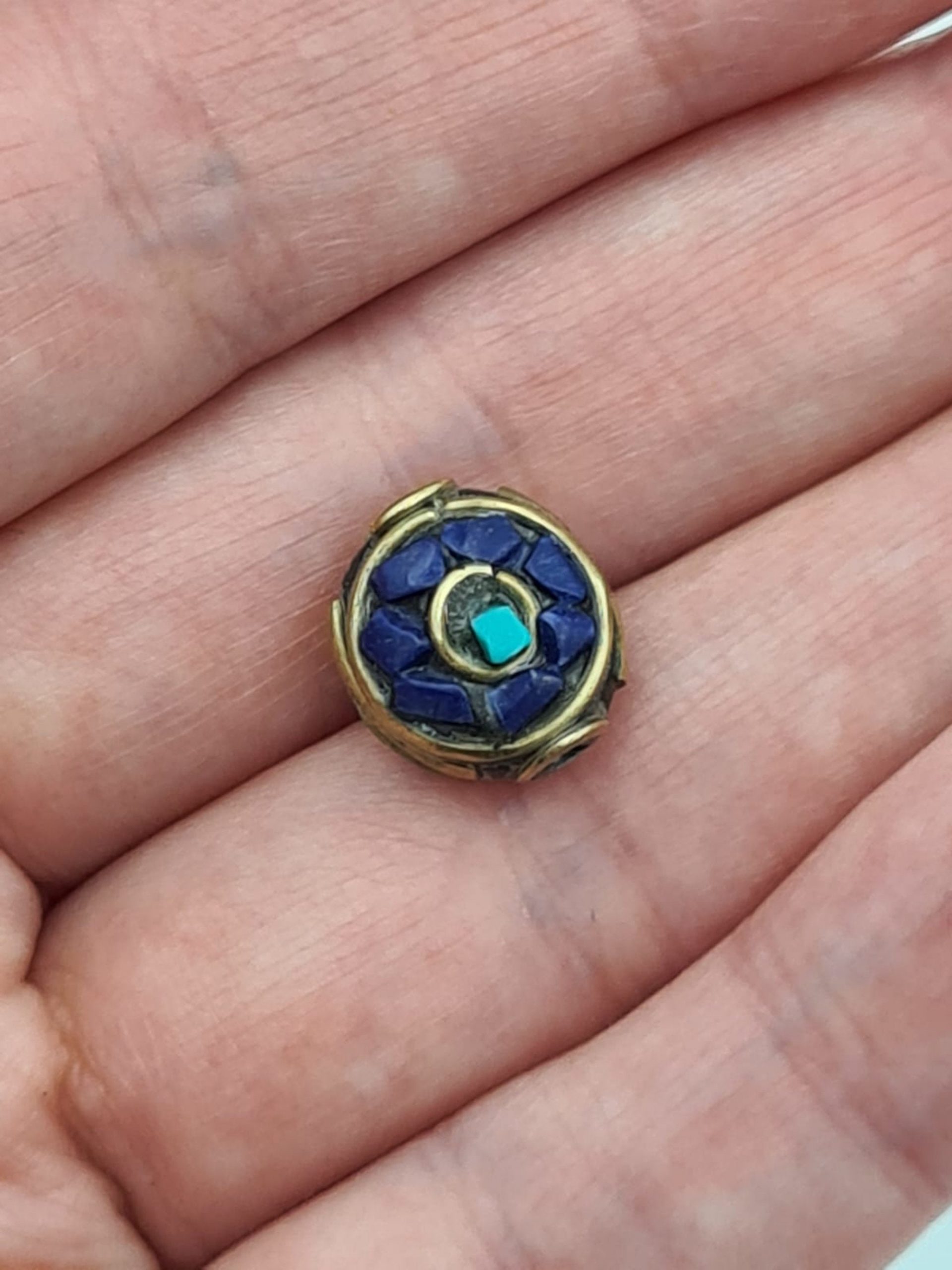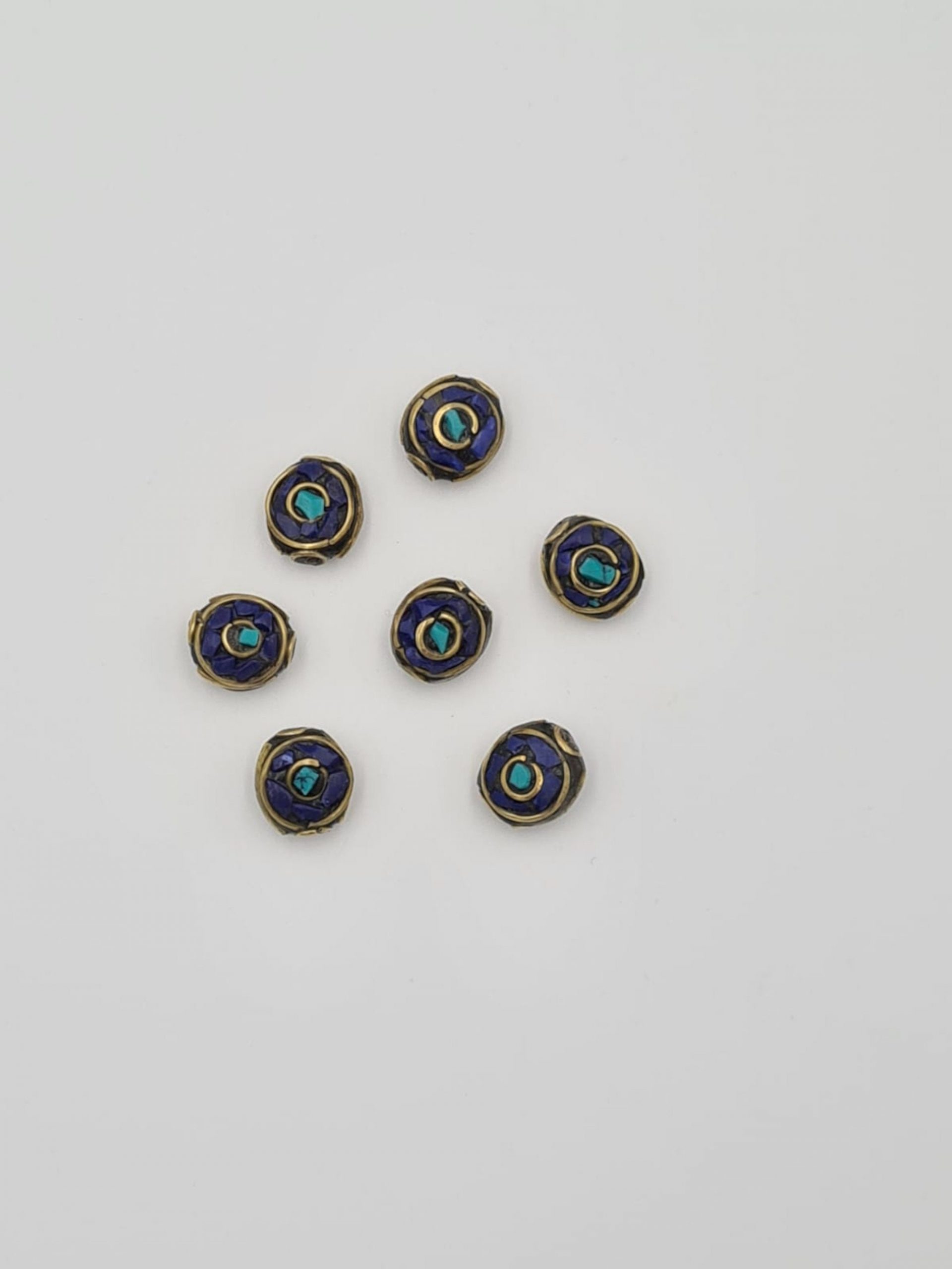 These are beautiful traditional Nepalese lapiz lazuli beads. They are made of lapiz lazul inlay and brass. All beads are handmade.