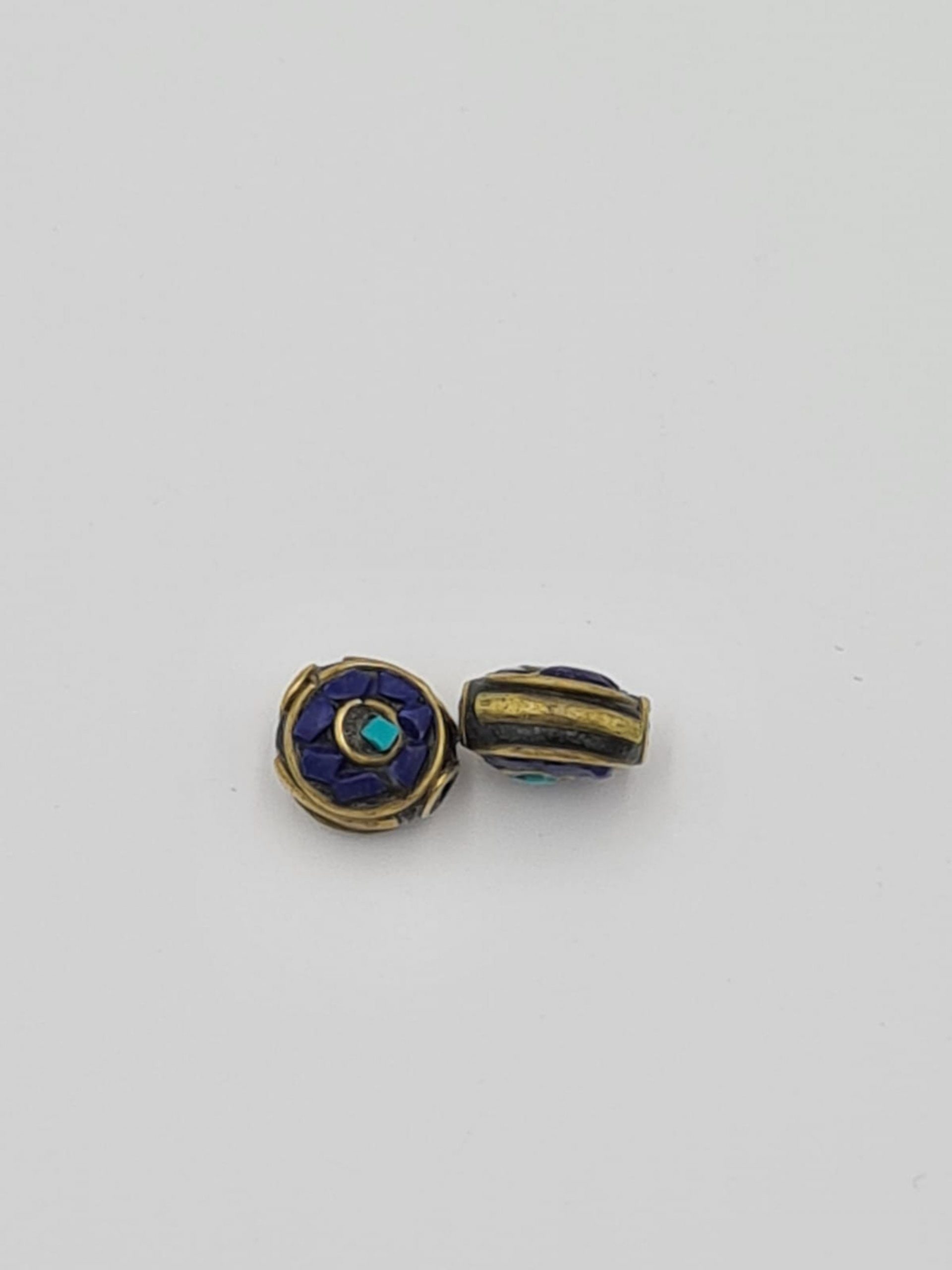 Pair of Lapiz Lazuli Beads, Ethnic Brass Beads, Mixed Ethnic Tribal Beads, Brass Beads, Jewellery Making Beads, Nepal