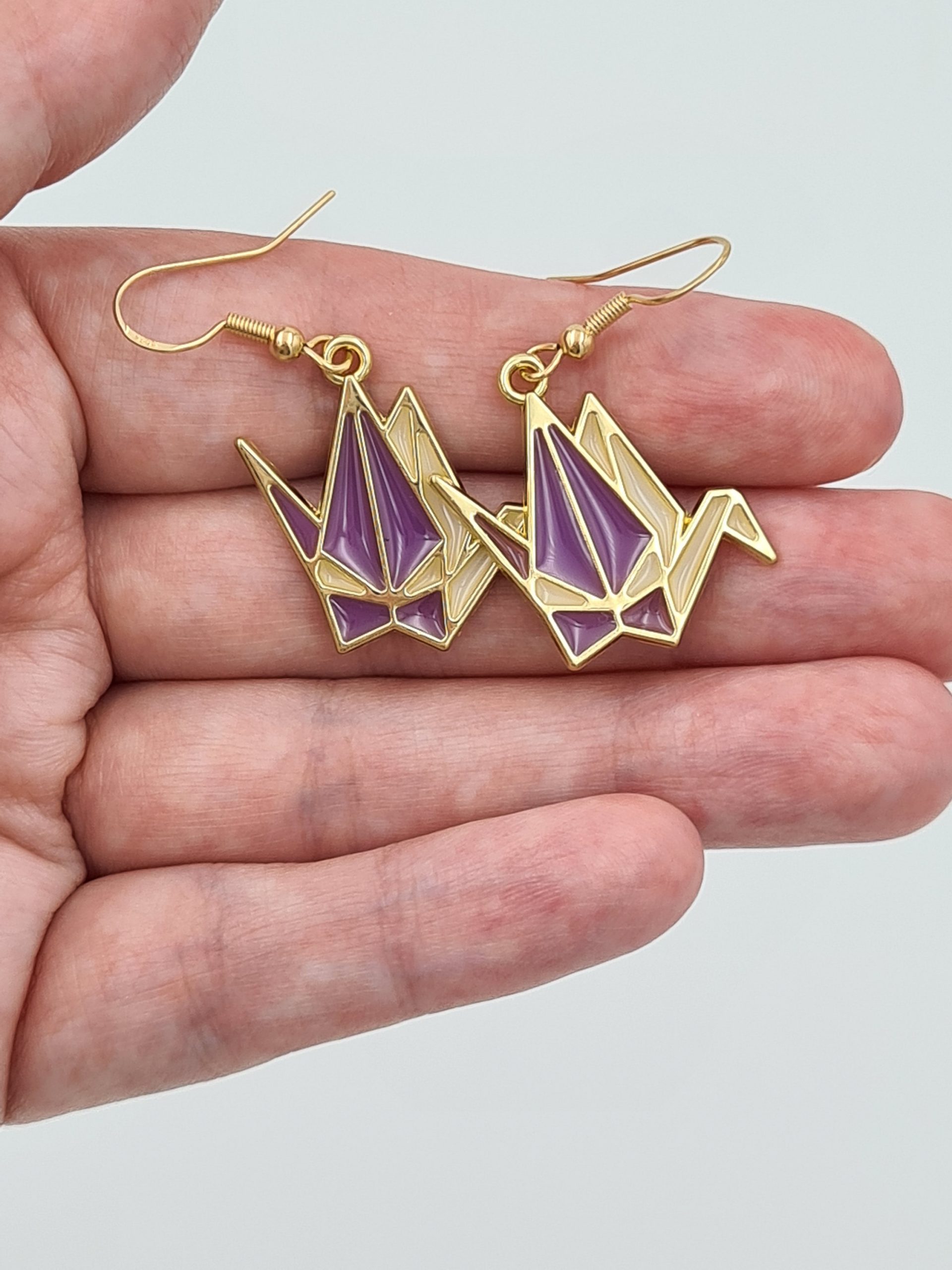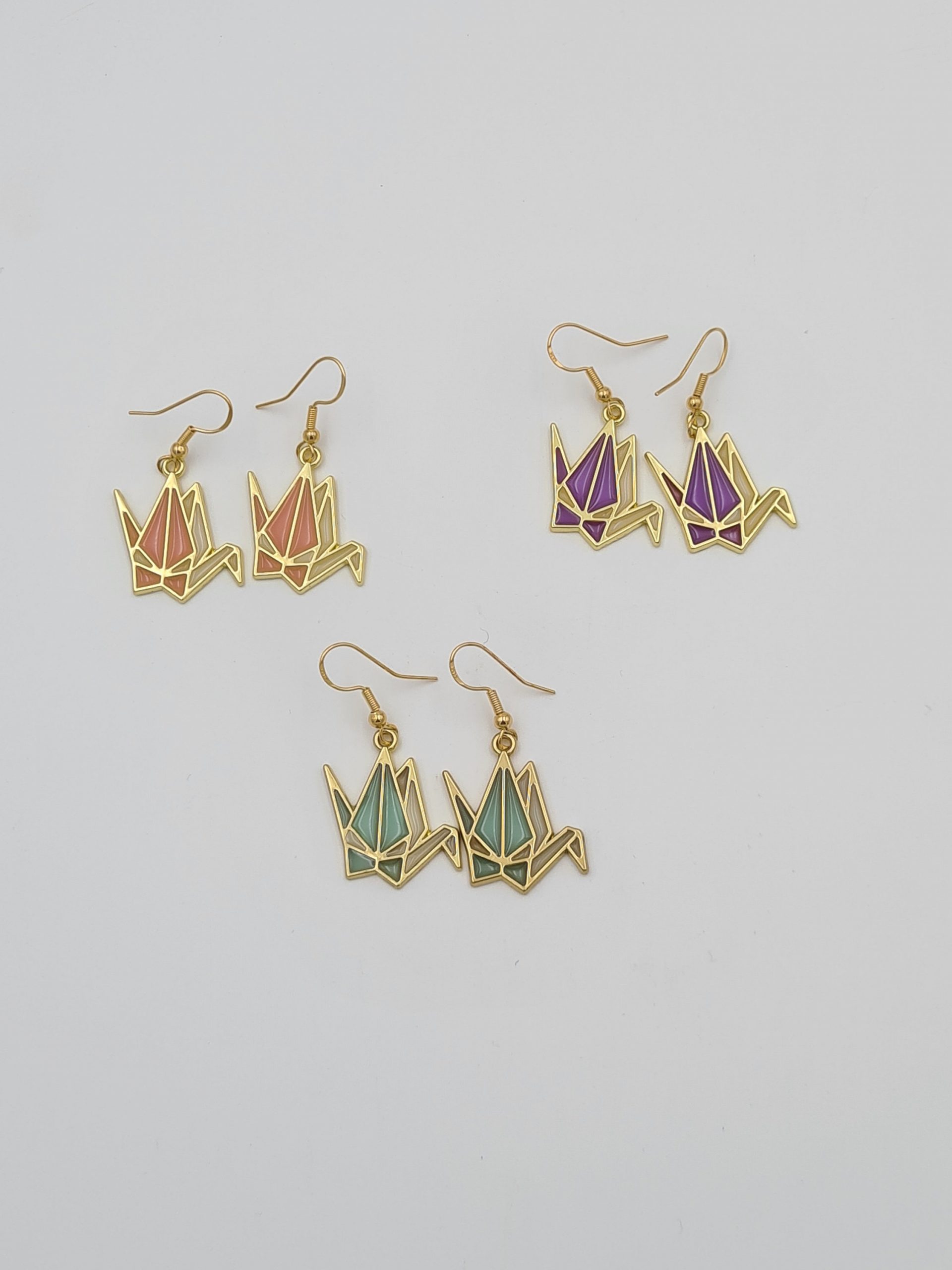 Beautiful origami swan earrings. We have them in 3 colours. They are really fun and quirky earrings and will be a perfect gift for someone.