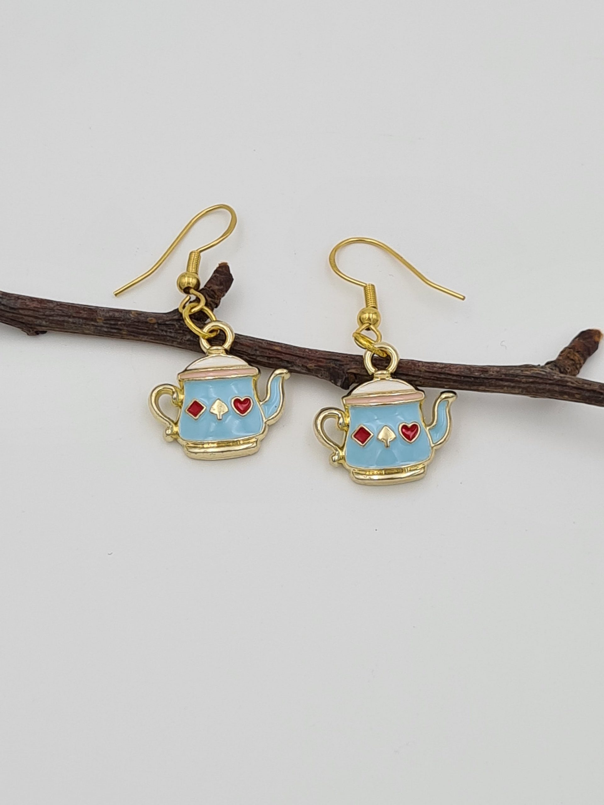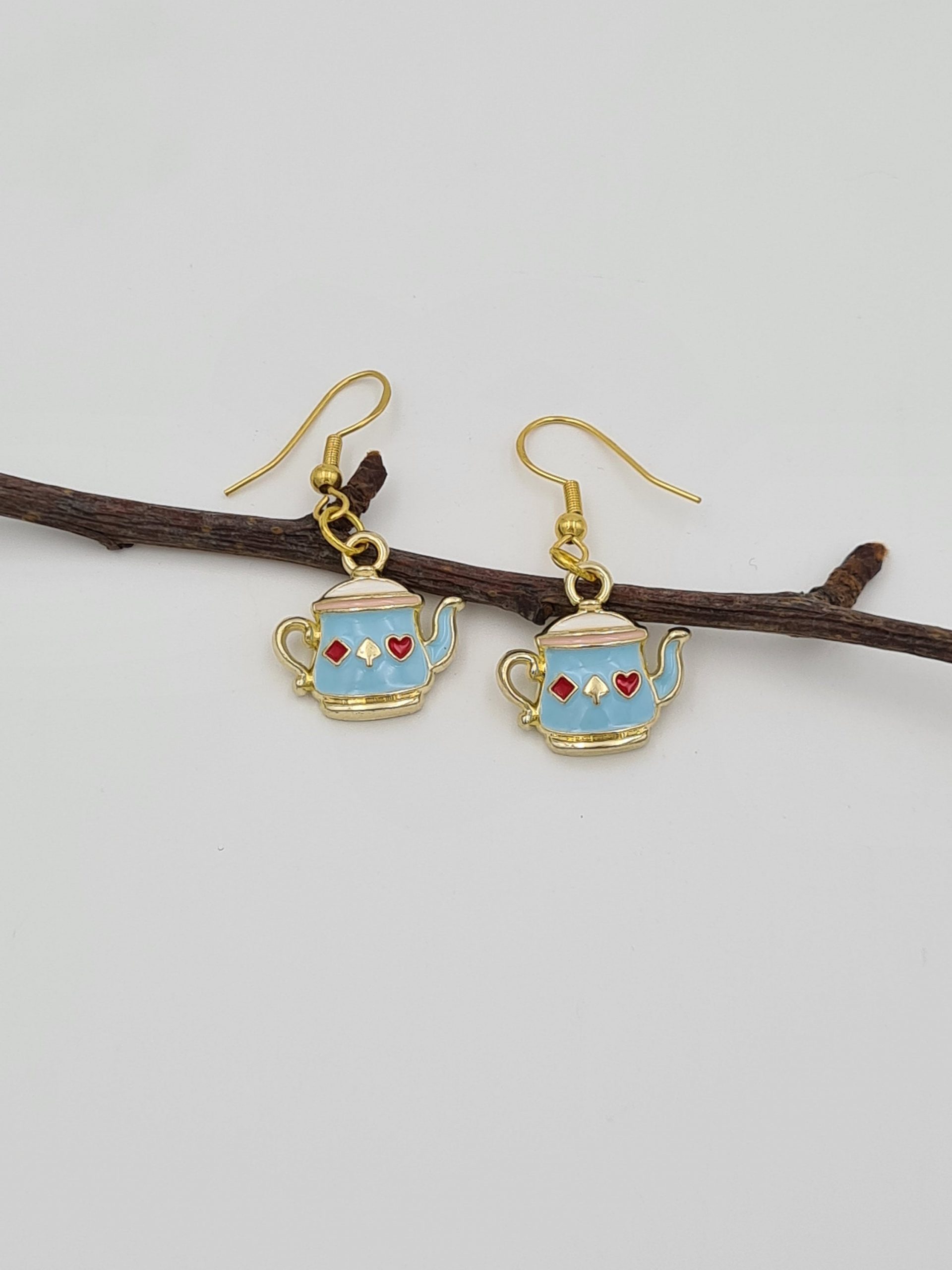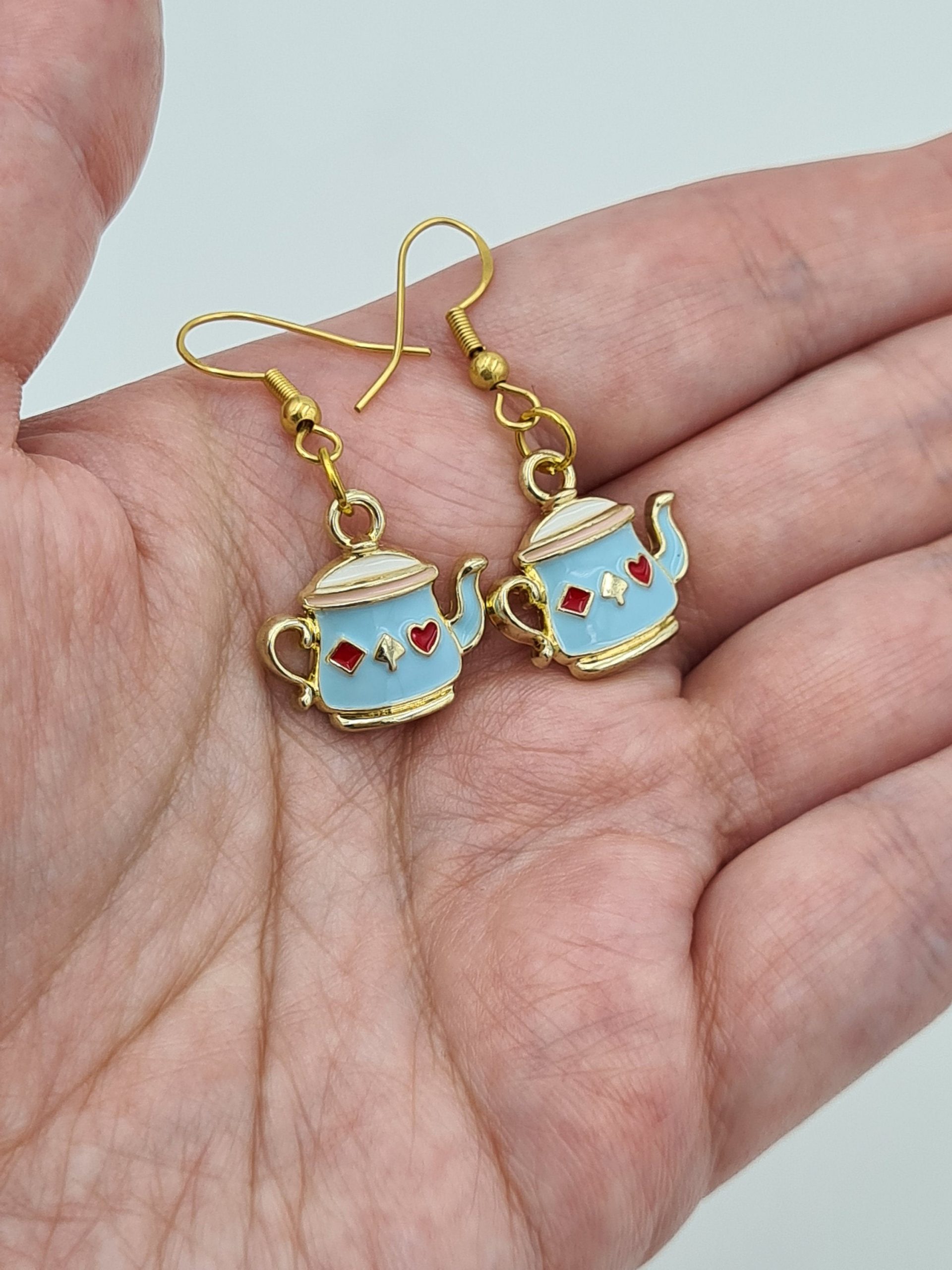 Fun teapot earrings. They are really fun and quirky earrings and will be a perfect gift for someone. They come in a pretty pouch and ready to be gifted. A gift note can be added as well.