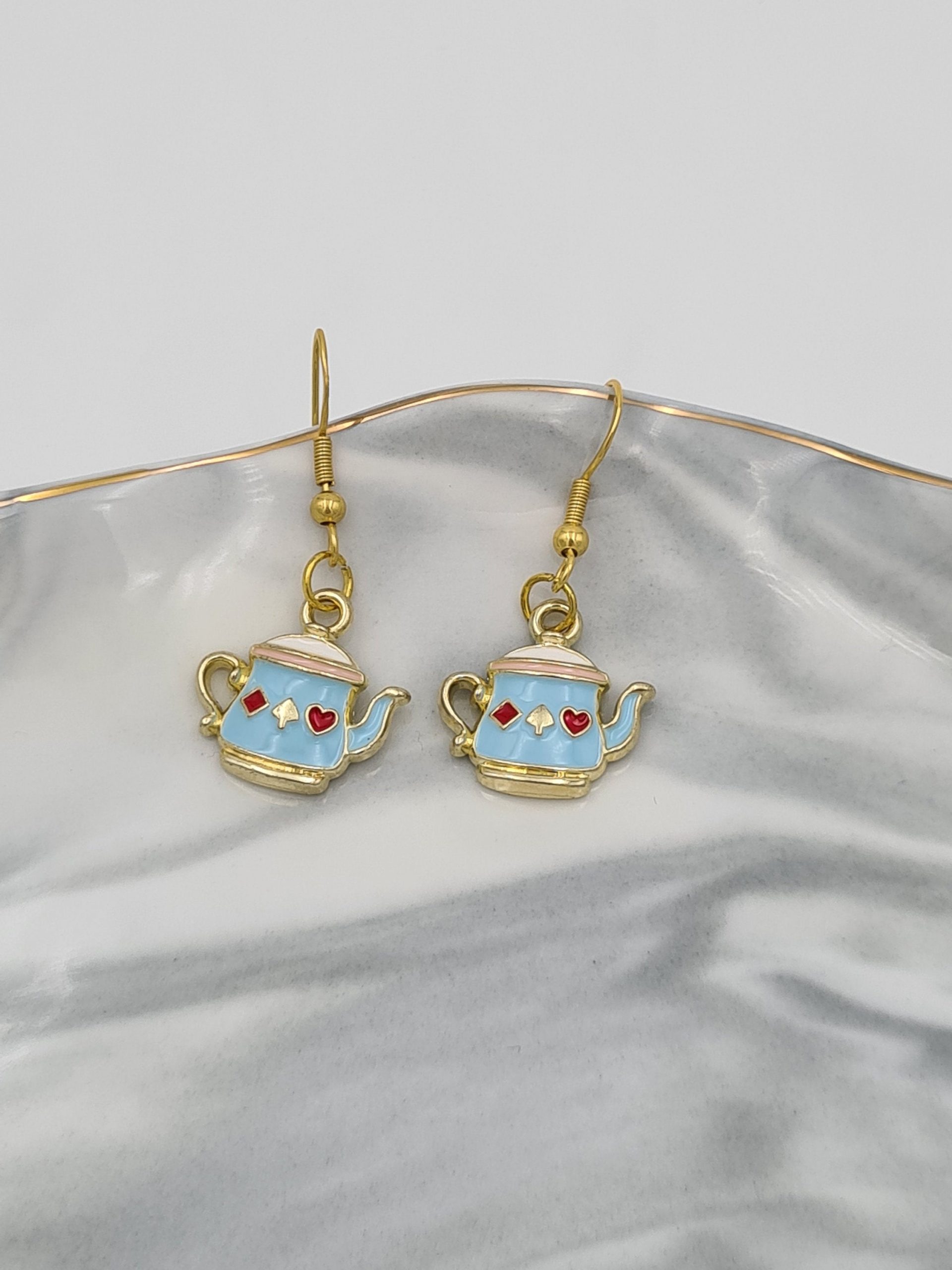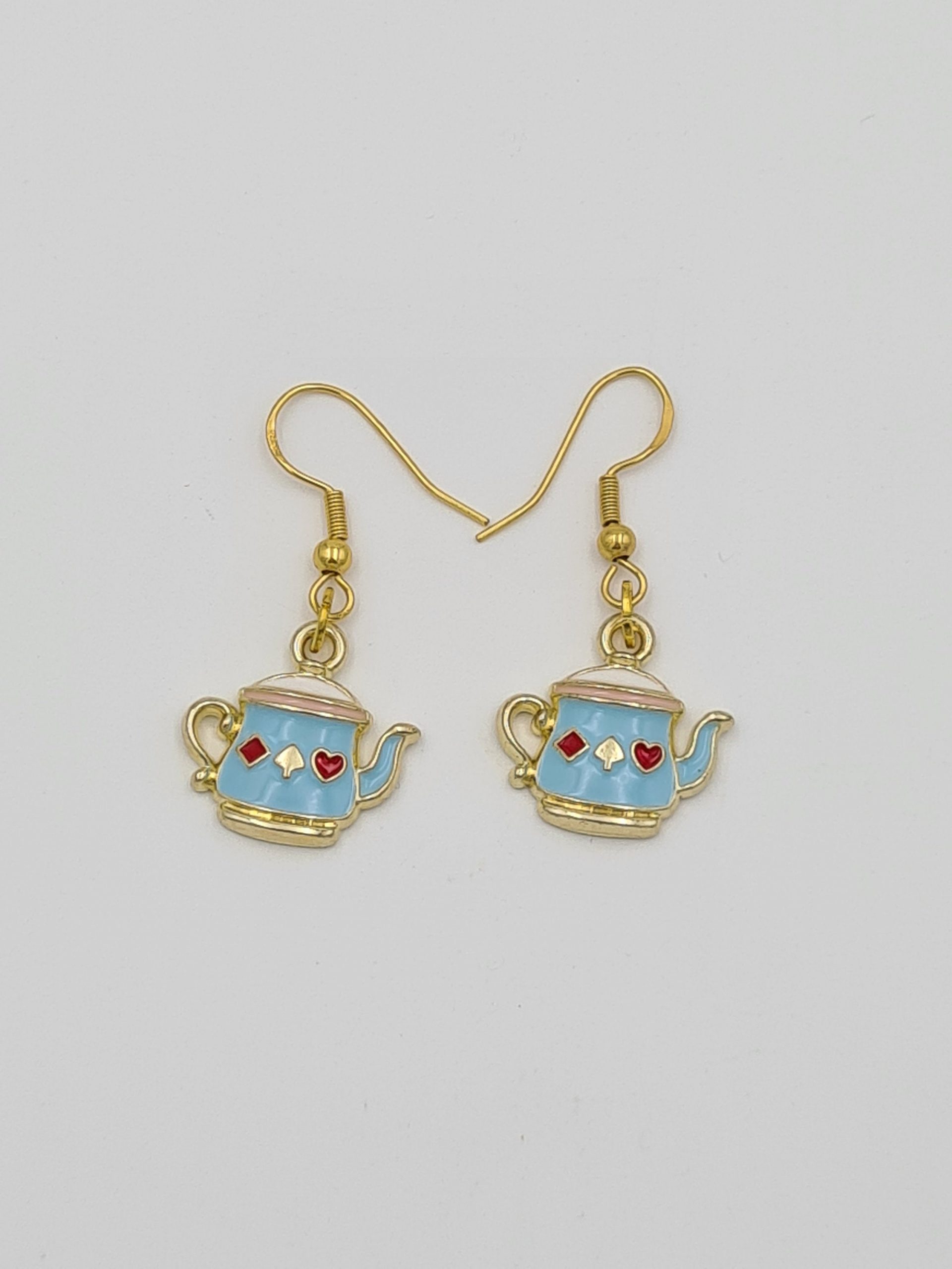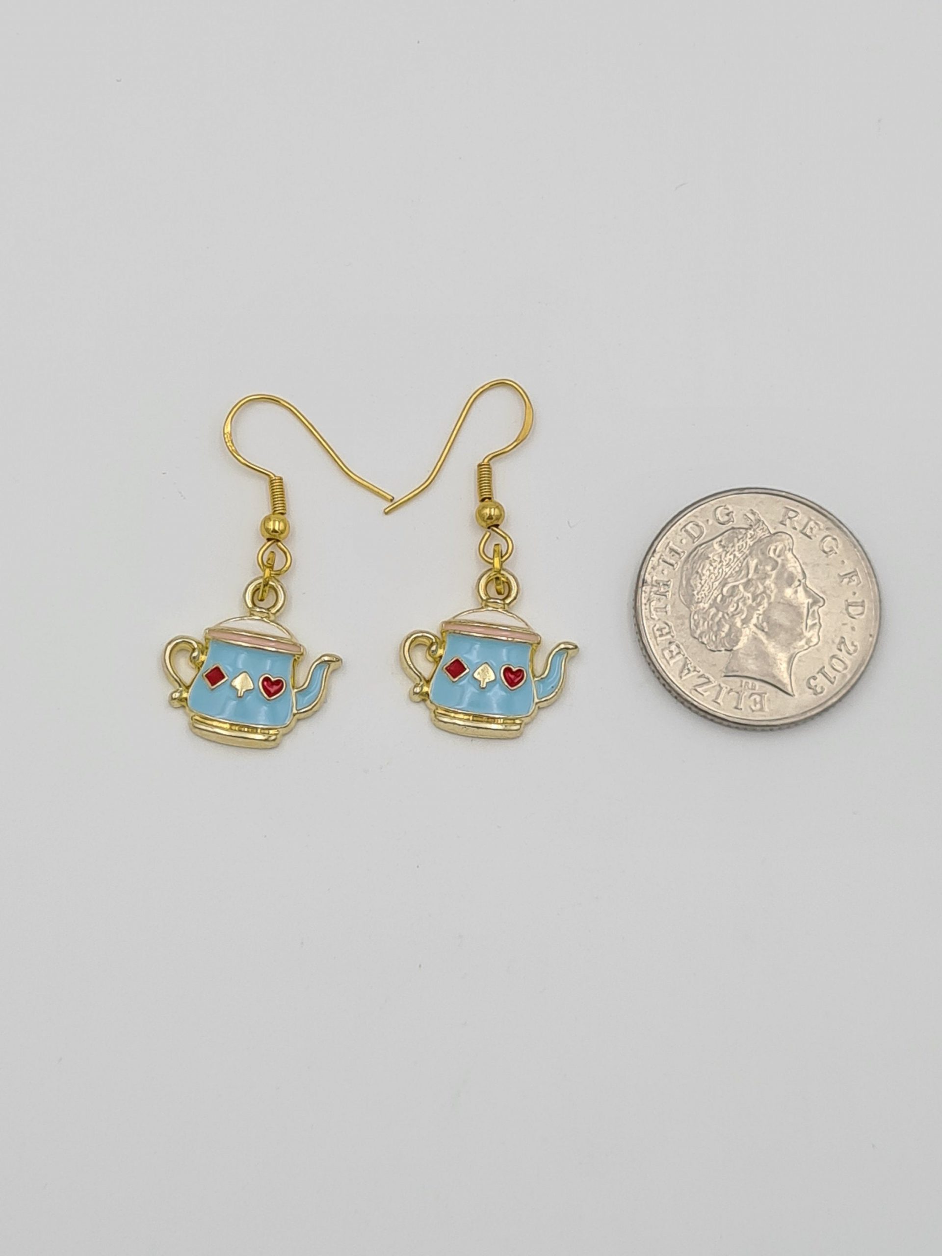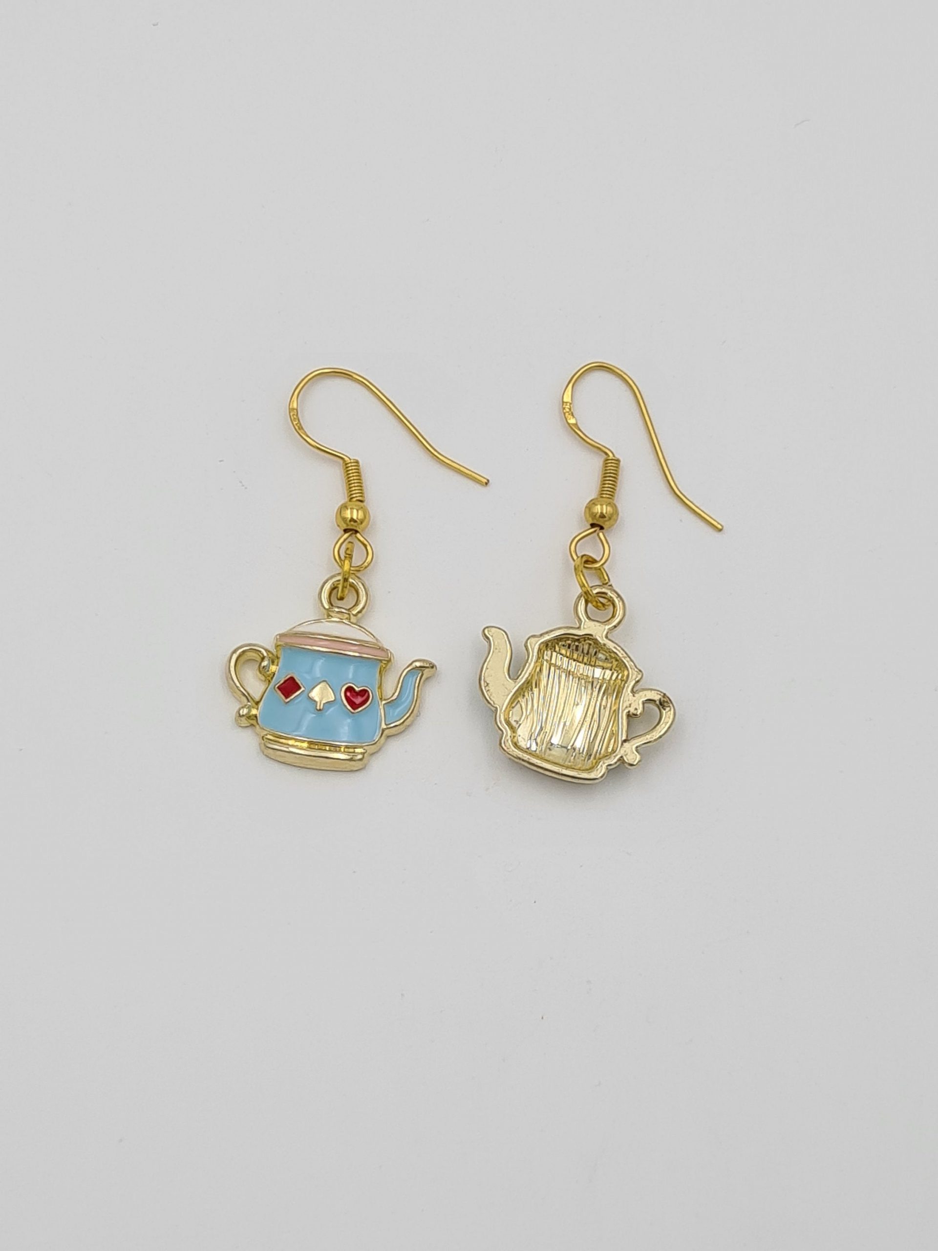 Fun teapot earrings. They are really fun and quirky earrings and will be a perfect gift for someone. They come in a pretty pouch and ready to be gifted. A gift note can be added as well.