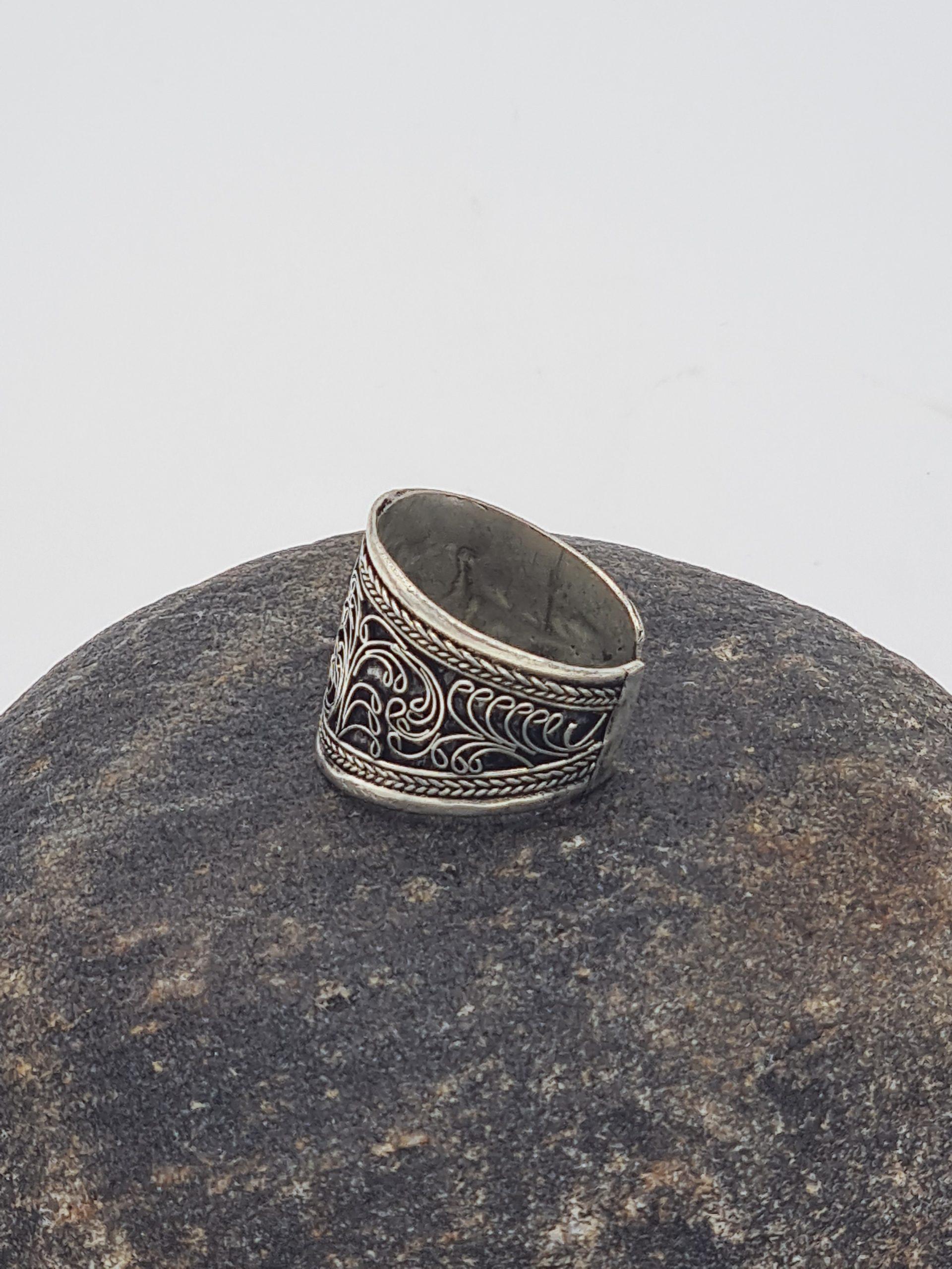 Beautiful Nepalese ethnic wide ring. It is made of Tibetan silver. Will be a perfect addition to someone who like ethnic jewellery. Ring is adjustable. If you have a very small finger you can message me, so we could choose the most suitable size for you.